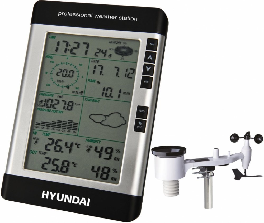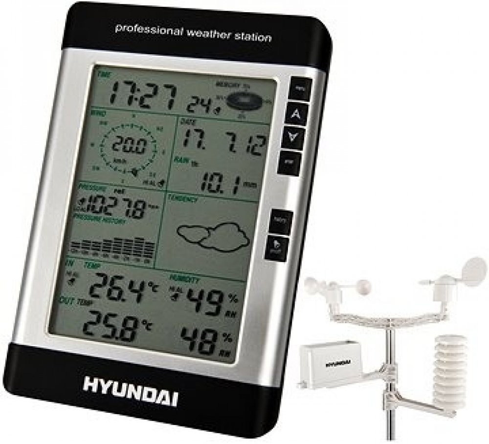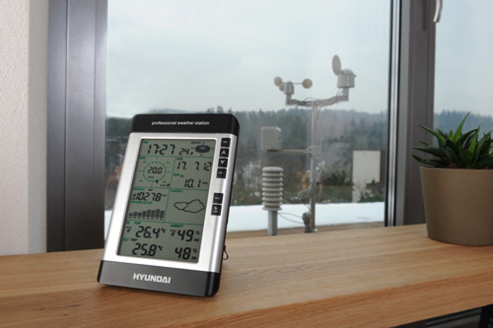 Meteostanice Hyundai WSP 3080 R WIND disponuje navíc větroměrem, který měří rychlost i směr větru a dešťoměrem. Tyto senzory stačí, spolu s kombinovaným senzorem pro měření venkovní teploty a vlhkosti, nainstalovat na přiložený stojan a všechna naměřená data jsou poté bezdrátově přenášena do hlavní jednotky. Odtud je pak můžete díky přiloženému software EasyWeather stáhnout do počítače a můžete si zobrazovat naměřené hodnoty v grafech a sledovat jejich historii.