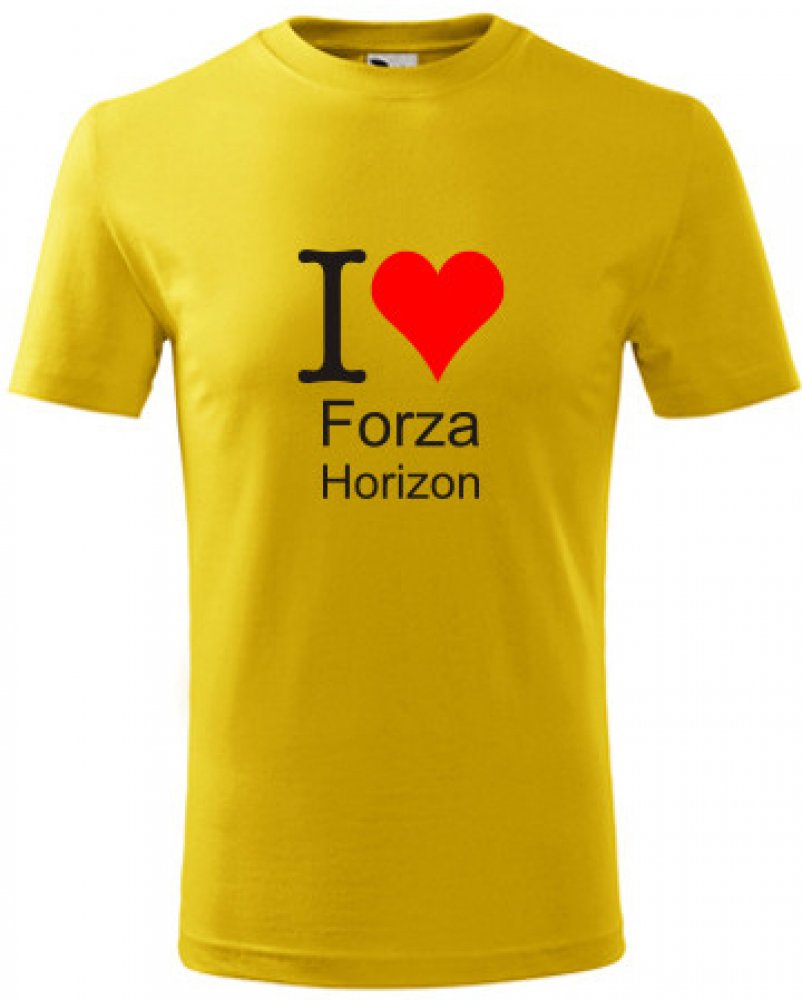Žluté dětské tričko I love Forza Horizon. nabízené velikosti jsou 4 roky, 6 let, 8 let, 10 let, 12 let. Výběr z 13ti barev. Tričko patří do kategorií Trička I love závodní hry - dětská, . Technologie potisku: Tisk na tričko je realizován pomocí termolisu a potisk je velice trvanlivý.