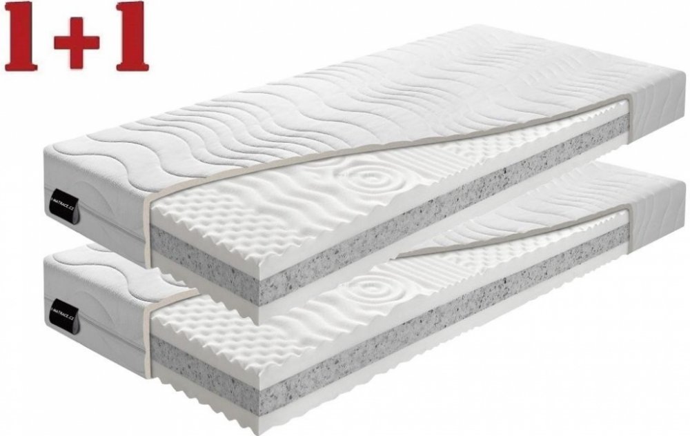Matrace Šarlota Doprava ZDARMA. Sendvičová matrace Šarlota v setu 1+1. Šarlota je oboustranná matrace, to znamená, že ať je uložena jakkoli, zajistí stejně pohodlný spánek. Obě strany matrace mají 7 zón. Svrchní (bílá) vrstva z PUR pěny je profilovaná (jemně masíruje a zlepšuje prokrvení pokožky). Střed matrace tvoří tvrzená deska (šedá) z pěny Poe/RE. Tato pěna je velmi odolná, má vyšší tvrdost a...
