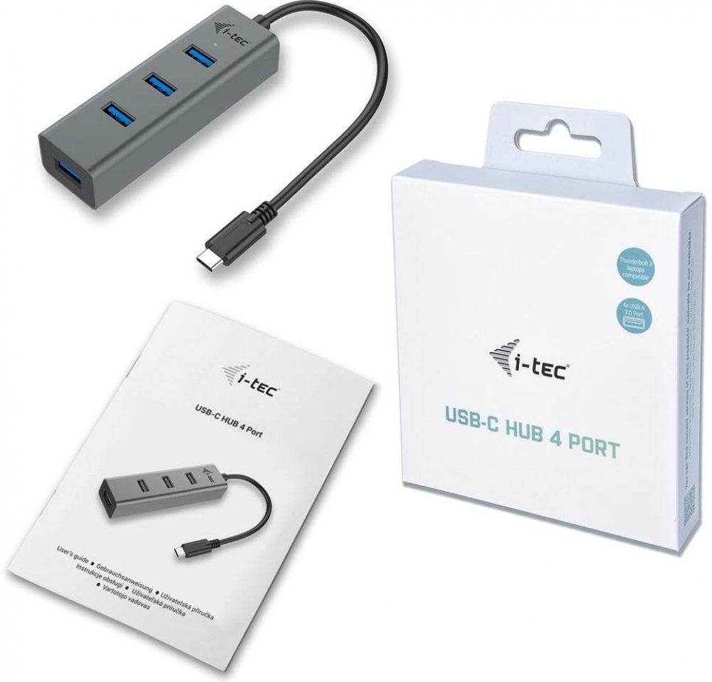 - i-tec USB-C 3.1 Metal HUB 4 Port s integrovaným USB-C kabelem (20 cm)
