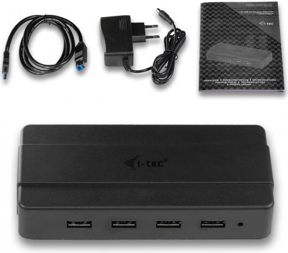 i-tec USB 3.0 Charging HUB 4 Port s napájecím adaptérem, 1x USB 3.0 nabíjecí port, ideální pro notebook ultrabook tablet PC, Windows Mac Linux