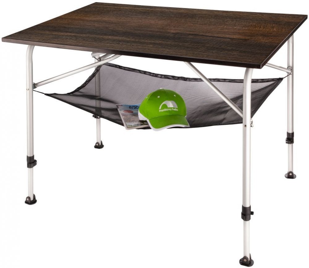 Klasický skládací stůl s robustní deskou. Všechny čtyři nohy jsou plynule nastavitelné mezi 59 a 72 cm. Stolová deska odolná proti povětrnostním vlivům, vč. úložná síť a uzemňovací kolíky.
