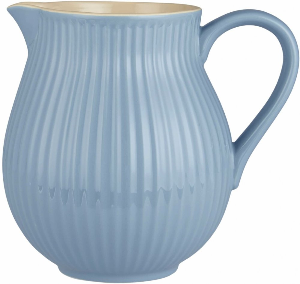 Jeho povrch zdobí jemné vroubky a zastřeně modrá barva, která dodá romantické kouzlo prostřenému stolu a v kombinaci s další keramikou z této řady k vám vnese příjemný venkovský nádech. objem 2 l / průměr 11,3 cm / výška 19 cm Vyrobeno z keramiky.