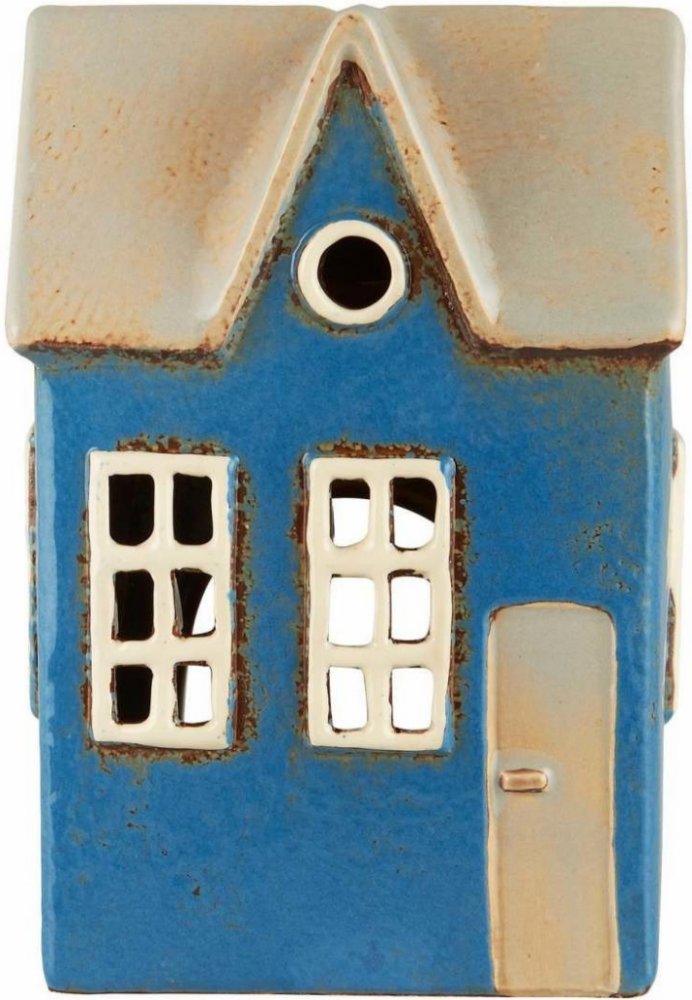 Ib Laursen keramický svícen, domeček Nyhavn, modrý