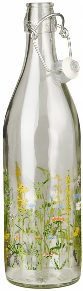 Lahev má klasický tvar, vyrobená je z čirého skla, které bohatě zdobí motiv lučního kvítí v sytých letních barvách. Vnese tak na jídelní stůl pravou prázdninovou atmosféru. objem 1,1 l / průměr 8 cm / výška 30,5 cm Vyrobeno ze skla.