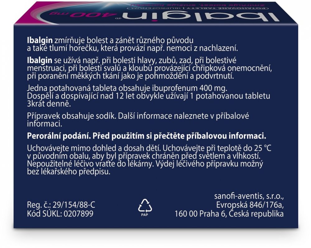 Jedná se o humánní léčivý přípravek (ATC skupina M01AE01), takže doporučujeme pečlivé pročtení příbalové informace.