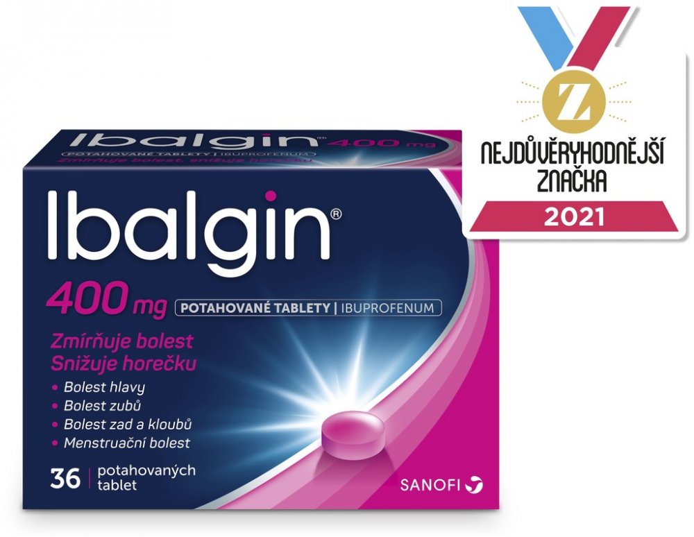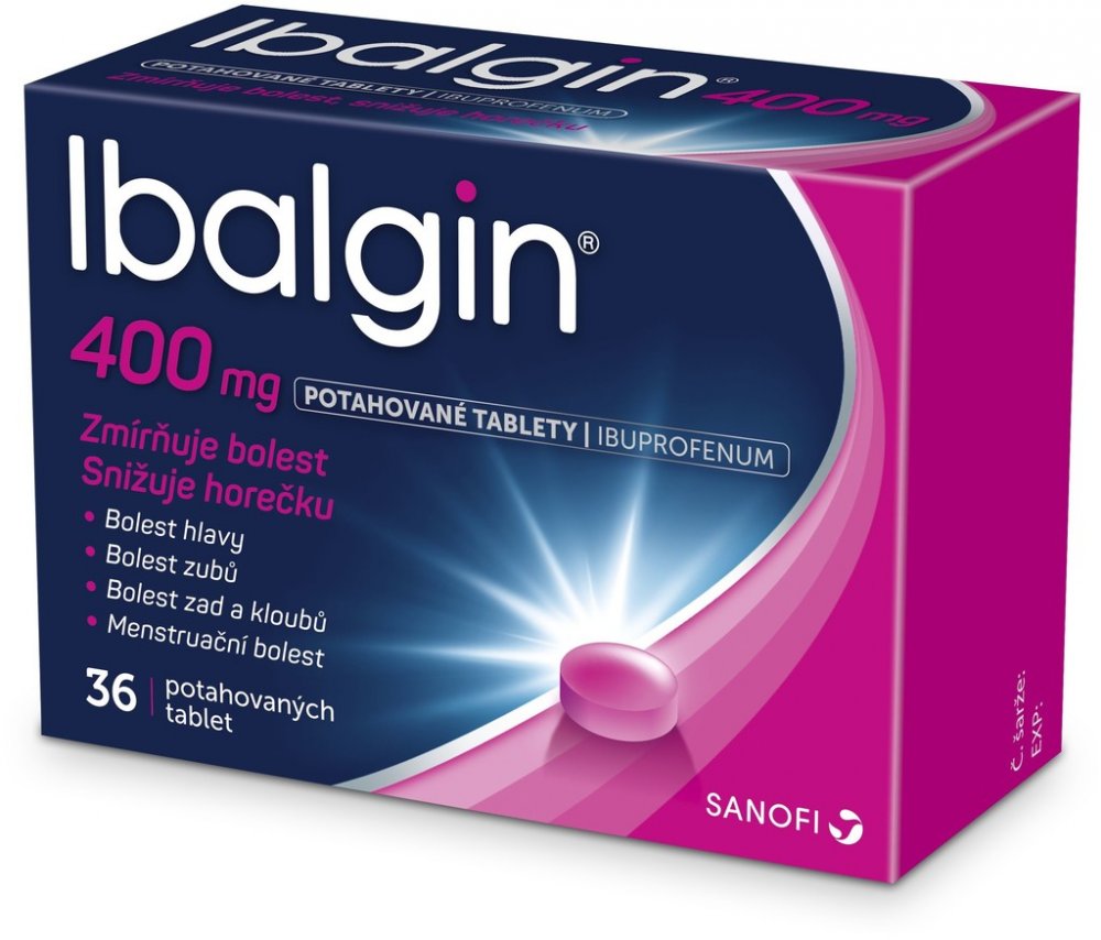 Přípravek Ibalgin 400 se užívá např. při bolesti hlavy, zubů, zad, při bolestivé menstruaci, při bolesti svalů a kloubů provázející chřipková onemocnění, při poranění měkkých tkání jako je pohmoždění a podvrtnutí.