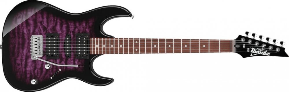 Elektrická kytara ze série GRX70 s tvarem těla GRX s širokým zvukovým rozsahem a třemi snímači. Tělo nástroje je vyrobeno z lipového dřeva s přední deskou ze žíhaného javoru, s uretanovou povrchovou úpravou. Javorový krk se specifickým GRX tvarem je osazen palisandrovým hmatníkem s 22 pražci. Šířka nultého pražce je 41,9 mm, délka menzura 647,7 mm.Nástroj je dále vybaven speciální kobylkou FAT 6 s...