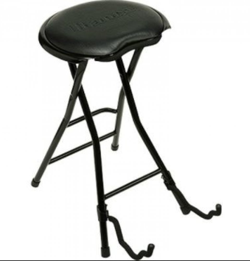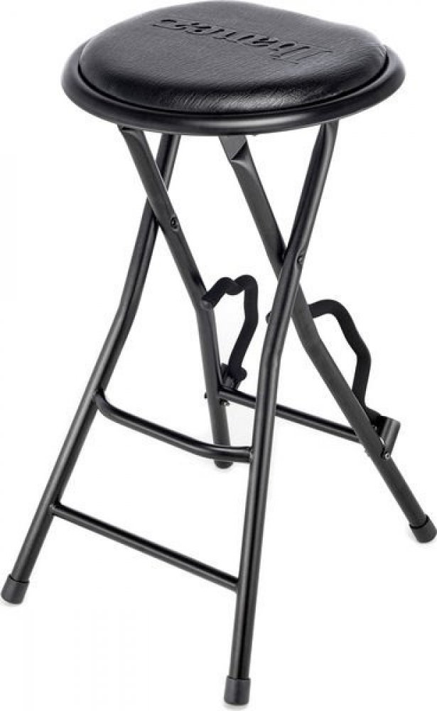 Kompaktní židle pro kytaristy s funkcí kytarového stojanu. Vrchní část má vystlaný a změkčený povrch. Lze ji jednoduše poskládat. Výška: 650 mm.Nedoporučuje se používat tento výrobek s nástroji, které mají povrchovou úpravu nitrolak, protože to může nepříznivě ovlivnit jejich povrchovou úpravu. I když bylo zjištěno, že tento produkt je bezpečný pro použití s různými povrchovými úpravami, při extrémní teplotě nebo vlhkosti by mohl ovlivnit povrchovou úpravu kytary.