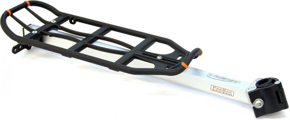 Montážní systém PakRak na brašny, umožňující jednoduché připnutí brašny na nosič.