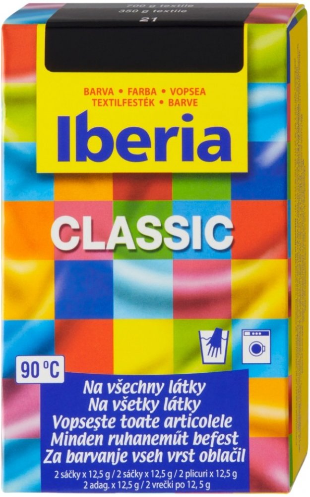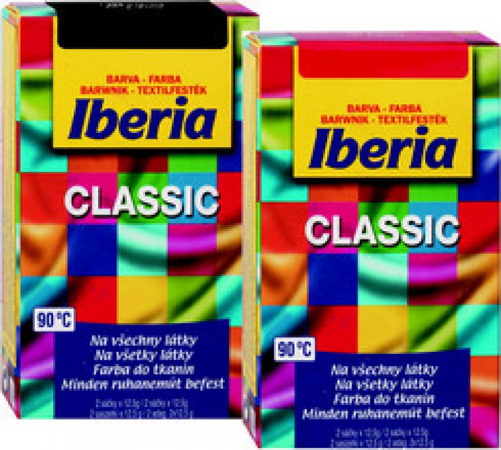 IBERIA CLASSIC – barva na textil je určena pro barvení v domácnosti. Při jejím použití se velmi snadno dosáhne profesionálního výsledku. Textilní vlákna, která lze barvit: Bavlna, len, vlna, hedvábí, juta, konopí, esparta, viskóza, umělé hedvábí, acetát, polyamid, lyocel. Také je možné barvit všechny přírodní materiály jako dřevo, korek,… Textilní vlákna, která nelze barvit: látky se 100% obsahem polyesteru, Goretexu, akrylu. Látky prošívané, nepromokavé a látky nesoucí označení “chemicky čistit”. Původní barva látky: barvy se sčítají (př. látka žluté barvy + modrá barva = látka zelené barvy). Proto se v některých případech musí barvený kus před vlastním barvením odbarvit, aby bylo dosaženo požadované barvy.