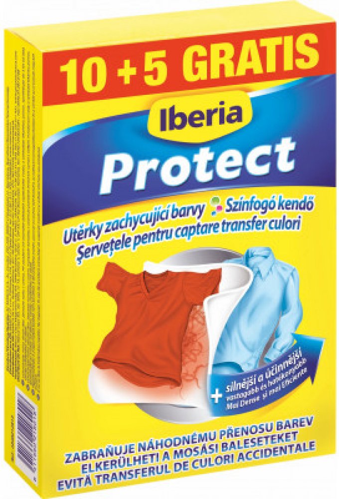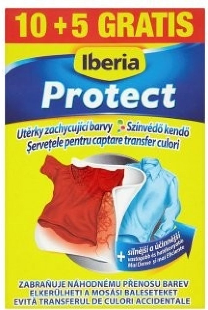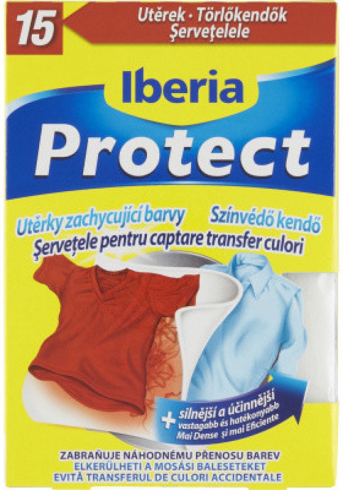 2. Utěrka Iberia Protect zachytí vyprané barvivo a zabrání obarvení jiných oděvů.