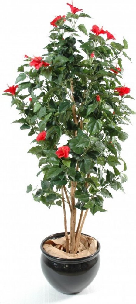 Luxusní umělý kvetoucí keř IBIŠEK ČERVENÝ, 150cm je od předního evropského výrobce, který se zaměřuje jen na produkty špičkové kvality. Pro výrobu jsou použity materiály a komponenty v TOP kvalitě. Vše je doladěno do posledního detailu jako u živých rostlin. Díky tomu jde o dokonalou repliku, která je jen těžko rozeznatelná od živé rostliny.Umělé kvetoucí stromy jsou skvělou alternativou živých stromů všude tam kde nemohou růst, nebo kde je péče o ně nemožná. Umělé stromy s květy mají navíc řadu výhod. Zůstanou po celý rok s květy, které nikdy nezvadnou a budou vypadat stále skvěle a čerstvě. Umělé stromy nemusíte zalévat, doplňovat, zeminu ani hnojiva. Kromě času tak ušetříte i peníze. Umělé kvetoucí stromy neprodukují žádný odpad a nároky na údržbu jsou prakticky nulové. Stačí je jen občas otřít vlhkým hadříkem. Navíc mohou tyto stromy být i v těžko dostupných prostorách, tmavých místech bez sluníčka, nebo zakouřených interiérech. Finální podobu lze snadno do jisté míry upravit a nehrozí ani nežádoucí růst. Květy jsou umělé a nelákají tak hmyz ani nezpůsobují alergickou rekci v období pilové sezóny. Umělé kvetoucí rostliny v interiérech pozitivně působí na člověka a navozuje pocity pohody, navíc podporují kreativitu. Nové materiály zaručují že stromy vypadají opravdu skvěle jako živé. U většiny umělých stromů je navíc použit přírodní kmen který podtrhává autentičnost rostliny.