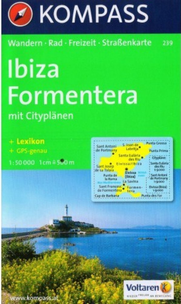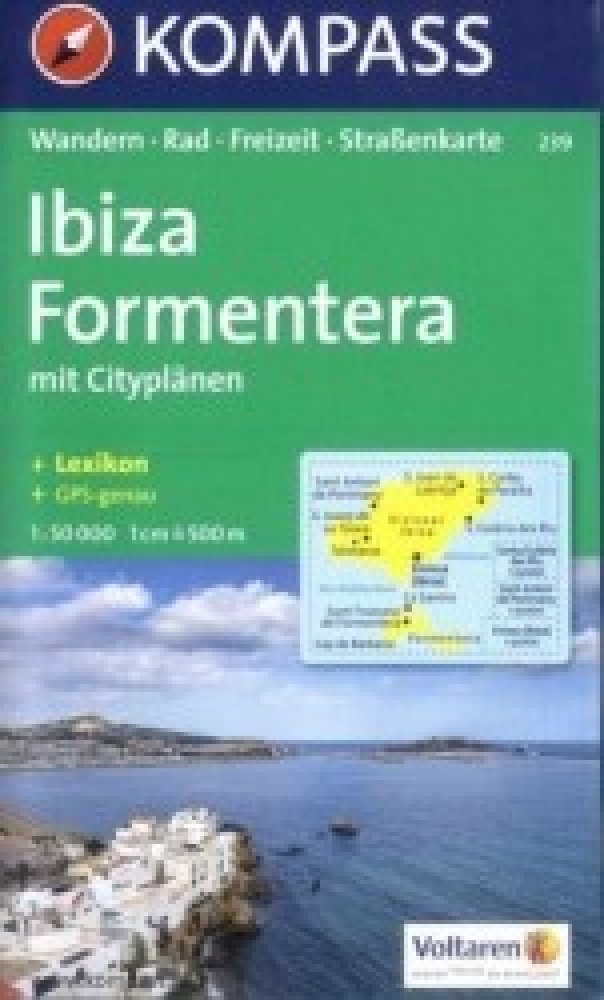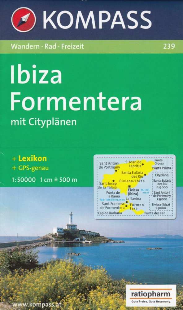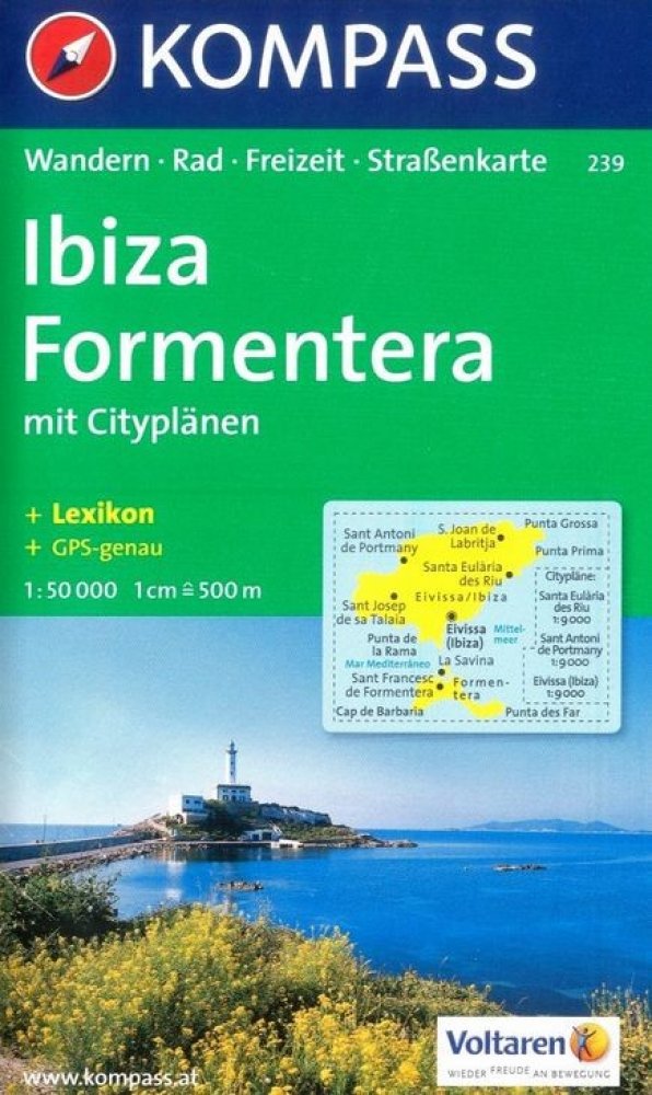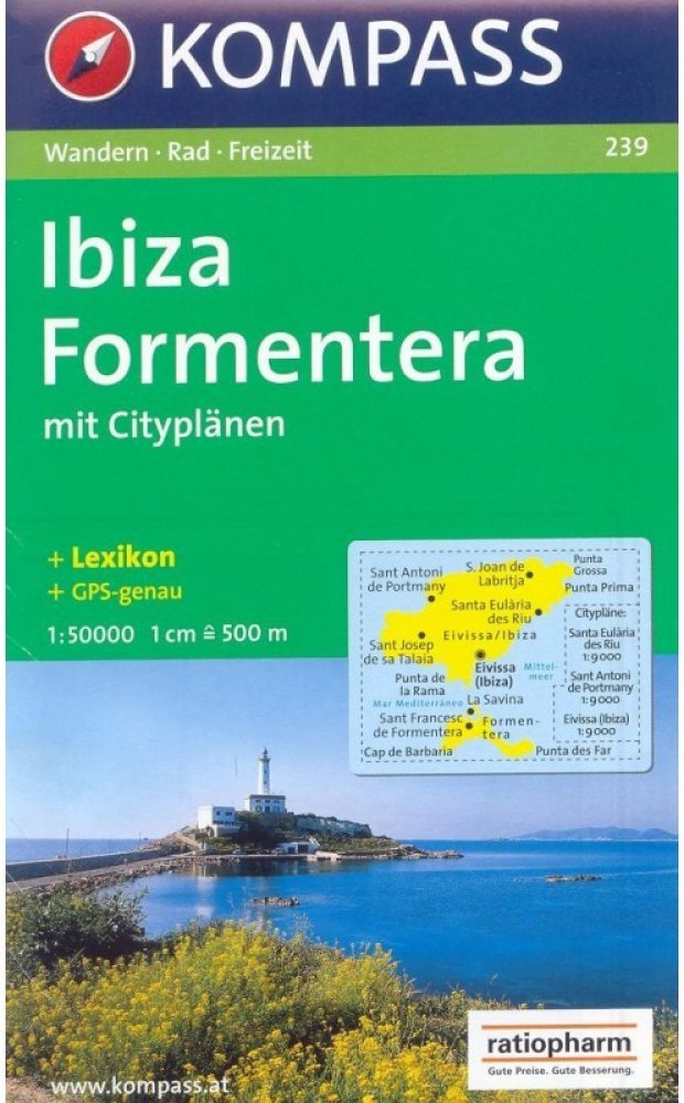 Turistická mapa a cyklistická mapa s trasami pro horská kola v měřítku 1:50 000 z Ibizy a Formentery na Baleárských ostrovech. S mapou města v centru Santa Eularia des Riu, Sant Antoni de Portmany a Eivissa / Ibiza Town Jasná pěší mapa a cyklistická mapa s vrstevnicemi, památkami, chaty, kempy, značené turistické trasy, trasy pro horská kola, cyklistické trasy atd. Použitelné GPS. Nebezpečné turistické trasy jsou snadno rozpoznatelné. Zahrnuje brožuru s informacemi a návrhy tras.