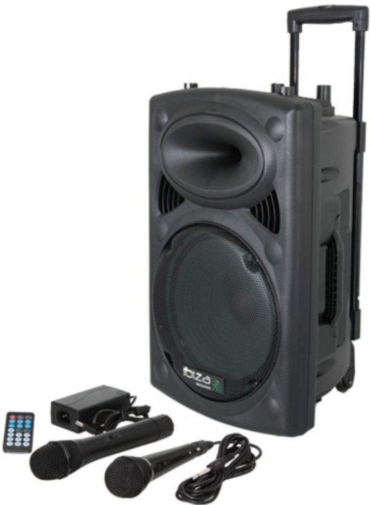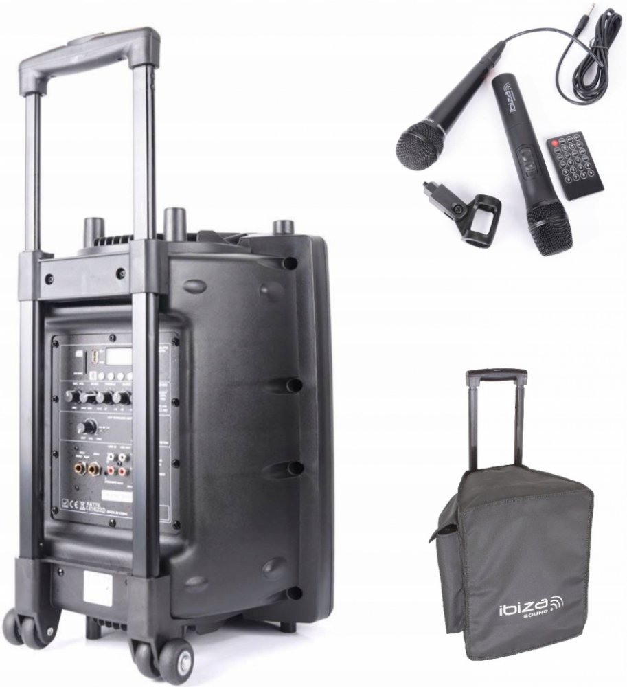 10" přenosný PA systém určený pro mobilní aplikace v terénu s 12V vestavěným akumulátorem. Výkon 50W. Obsahuje 1x ruční bezdrátový UHF mikrofon, 1 ruční kabelový mikrofon. Má vstupy pro dva kabelové mikrofony 1x LINE vstup a LINE mix výstup. Má vestavěný MP3 přehrávač s USB konektorem, slotem pro SD kartu, LCD displejem a dálkovým ovládáním. Také má 2-pásmové korekce a echo efekt. Systém má možnos...