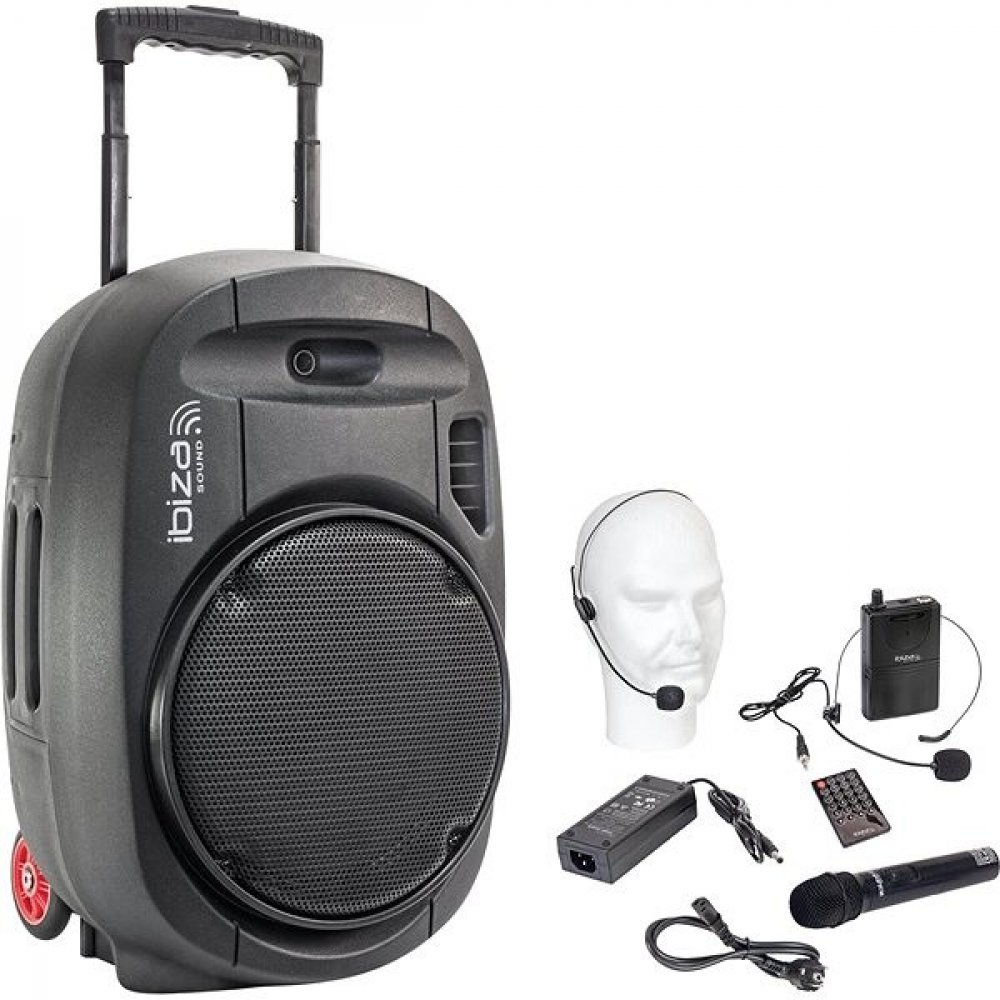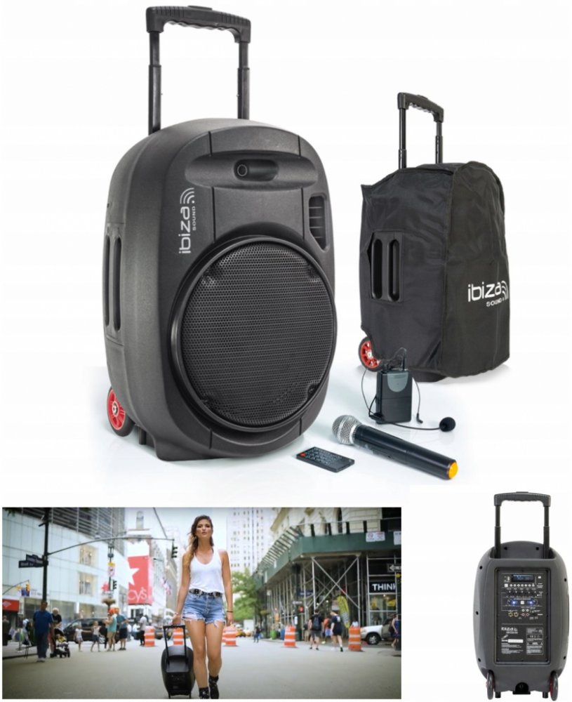Tento aktivní přenosný zvukový systém ve dvoupásmovém provedení vyniká výjimečnou kvalitou zvuku a masivním výkonem, který zajištuje kvalitní vestavěný zesilovač. Je vybaven vestavěnou dobíjecí baterií s kapacitou 4500 mAh a vydrží v provozu více než 5 hodin takže nutně nepotřebujete řešit zdroj napájení. Díky výsuvné rukojeti, kompaktní velikosti, polyuretanovým kolečkům na kuličkových ložiscích a velmi nízké váze si jej můžete vzít s sebou, kamkoli půjdete. Profesionální UHF bezdrátové mikrofony (ruční a náhlavní) zajišťují optimální všestrannost a volnost pohybu bez nežádoucího rušení. Přehrávač systému lze ovládat přiloženým dálkovým ovládáním s pomocí přehledného podsvíceného LCD displeje, které zvyšují snadnost jeho použití. Na zadním panelu pak máte možnost připojení dalších dvou drátových mikrofonů, RCA Line vstup a výstup, vestavěný MP3 přehrávač s USB vstupem, slot pro SD kartu nebo FM tuner. Dále umožňuje komfortní bezdrátovou konektivitu pomocí Bluetooth takže lze hudbu snadno přehrávat bez kabelů přímo z vašeho notebooku nebo mobilního telefonu. K dispozici dále máte například dvoupásmové korekce nebo echo efekt. Tento mimořádně všestranný systém je cenným pomocníkem v mnoha oblastech: sportovní akce, street dance, bary, terasy, vystupující umělci a hudebníci v interiéru i exteriéru, konferenciéři... Díky četným vstupům a výstupům USB / SD / Line / Mic umožňuje systém připojit další média, které rozšíří další možnosti přehrávání. Součástí balení je ochranný obal, který ochrání systém před nepřízní počasí nebo při transportu.