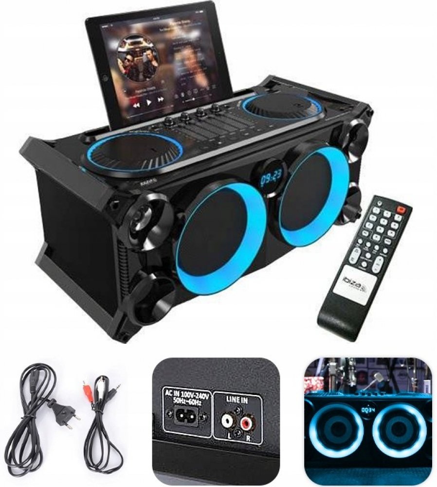 Tento systém má nejen vynikající kvalitu zvuku, ale i moderní design, který se dokonale hodí do vaší domácnosti. Zabudovaný BlueTooth umožňuje bezdrátově přehrávat hudbu z telefonu, tabletu nebo počítače. Systém obsahuje USB/SD/MP3 přehrávač s FM tunerem a LED displejem. Systém je osazen 2x 1,5" vysokotónovým a 2x 5,5" basovým reproduktorem. Reproduktory jsou nasvícené barevnou LED indikací, blikající a měnící barvu podle hudby. Systém má funkci nahrávání na USB/SD a obsahuje 5-pásmový ekvalizér. Má linkový vstup a mikrofonní vstup s oddělenou regulací hlasitosti, 2-pásmovými korekcemi a efektem Echo. Na horní straně má držák pro tablet. Zabudovaná dobíjecí baterie umožňuje přehrávat hudbu i mimo dosah elektrické sítě. Výdrž na baterii je cca 3hod. K systému je dodávané dálkové ovládání pro ovládání všech funkcí systému.