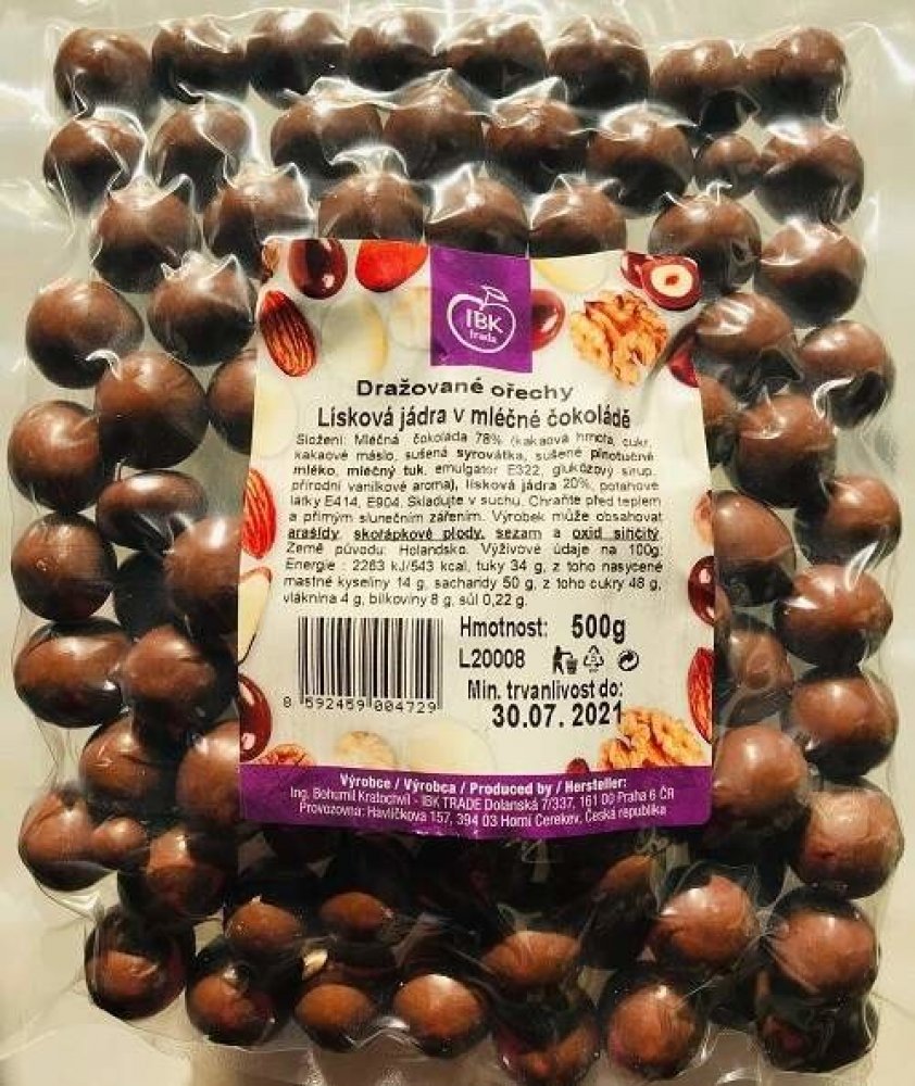 IBK Trade lískové ořechy v mléčné čokoládě 500 g jádra sladké ořechy