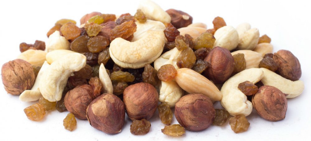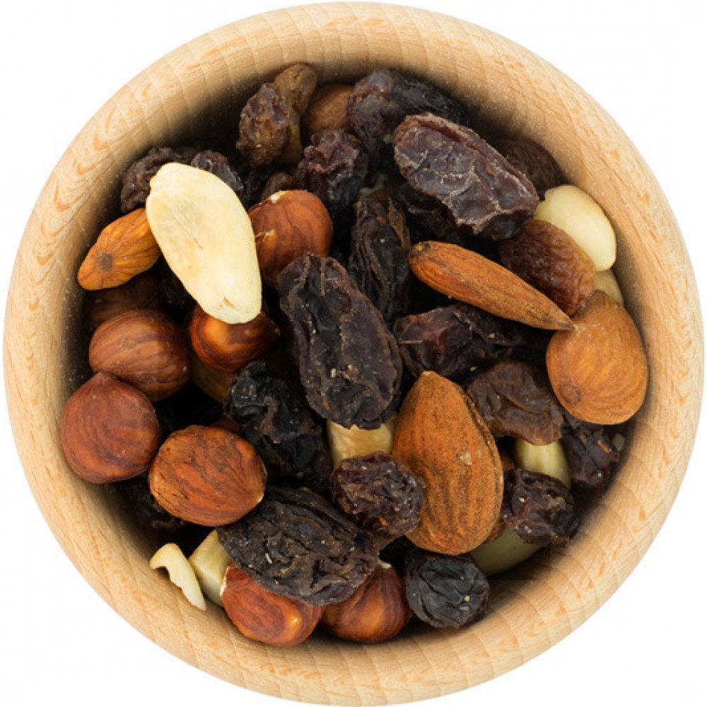 Složení: Mandle, Lískové ořechy, Kešu, Rozinky