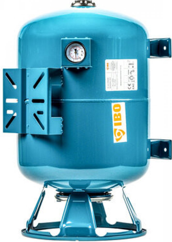 Tlaková nádoba-stojato ležatá IBO - 50l s manometrem, slouží jako zásobník čerpané vody pro domácí vodárny, přečerpávací a tlakové stanice nebo průmyslové stanice.