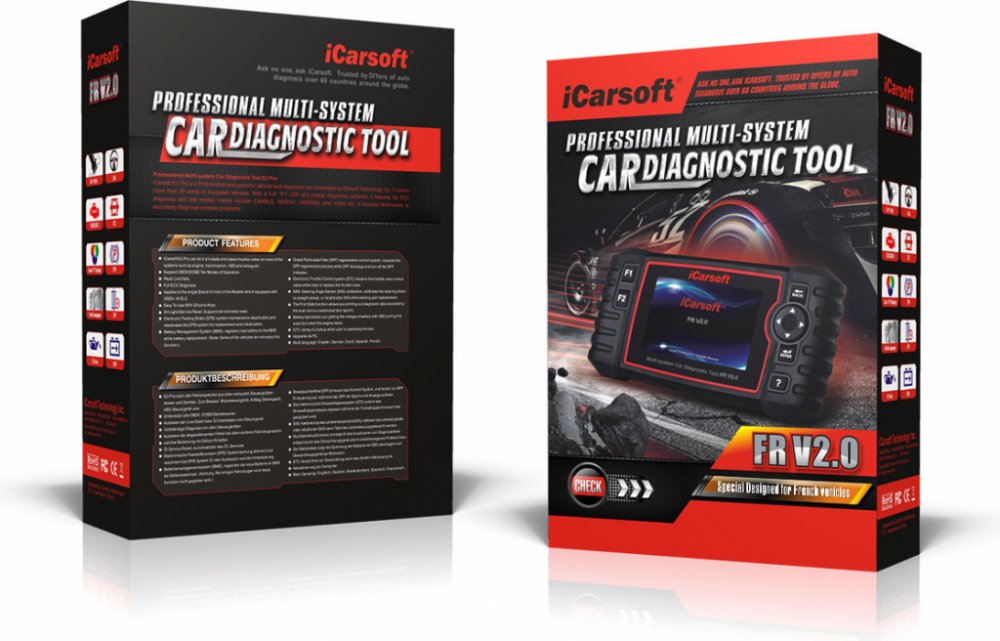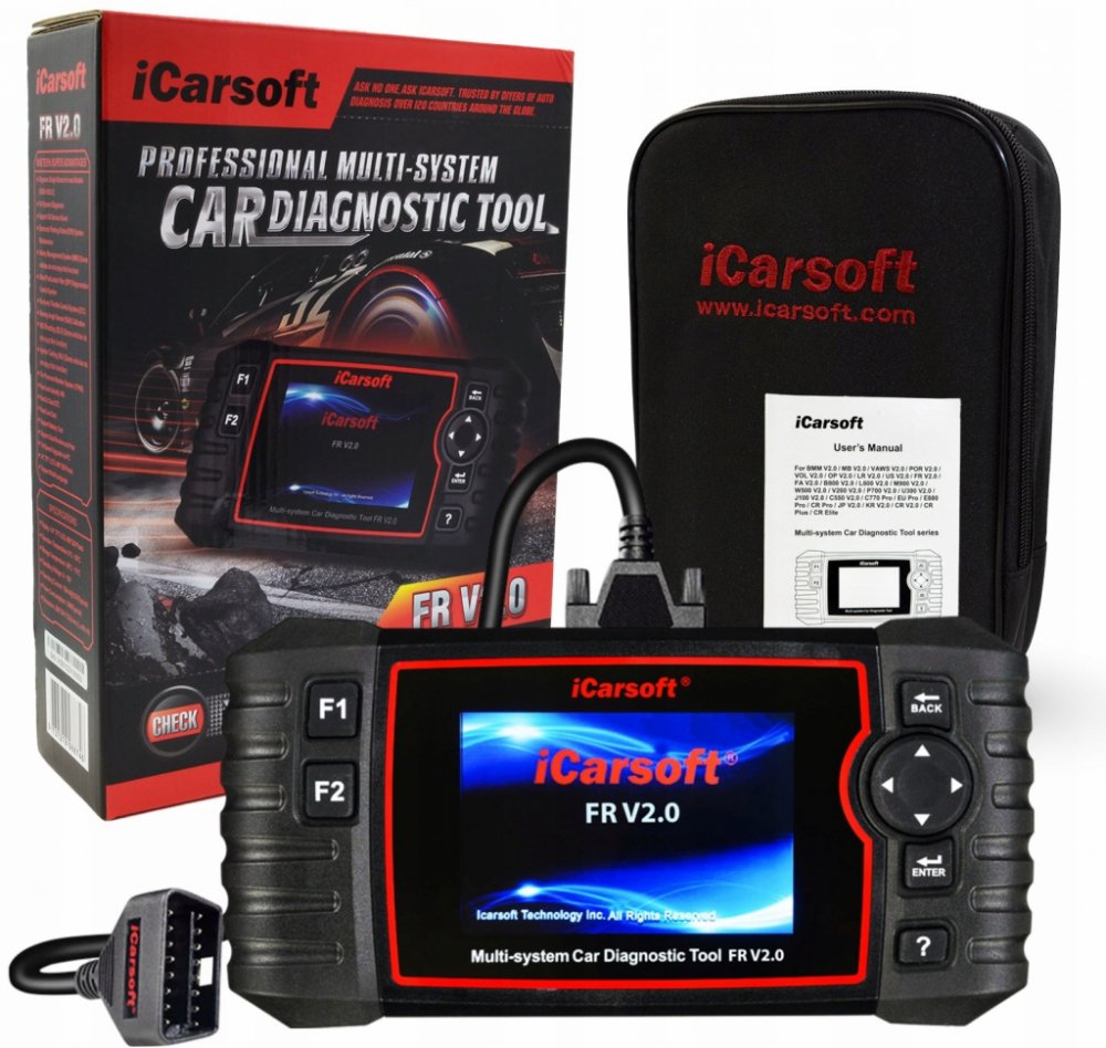 iCarsoft FR V2.0 je diagnostický přístroj určený pro vozy značek Citroen/Dacia/Peugeot/Renault. Podporuje diagnostiku všech jednotek, u kterých umožňuje čtení a výmaz chyb, zobrazení live dat, a některé servisní funkce. V rámci standardu OBD-II umožňuje navíc základní diagnostiku motoru i pro všechny ostatní značky.