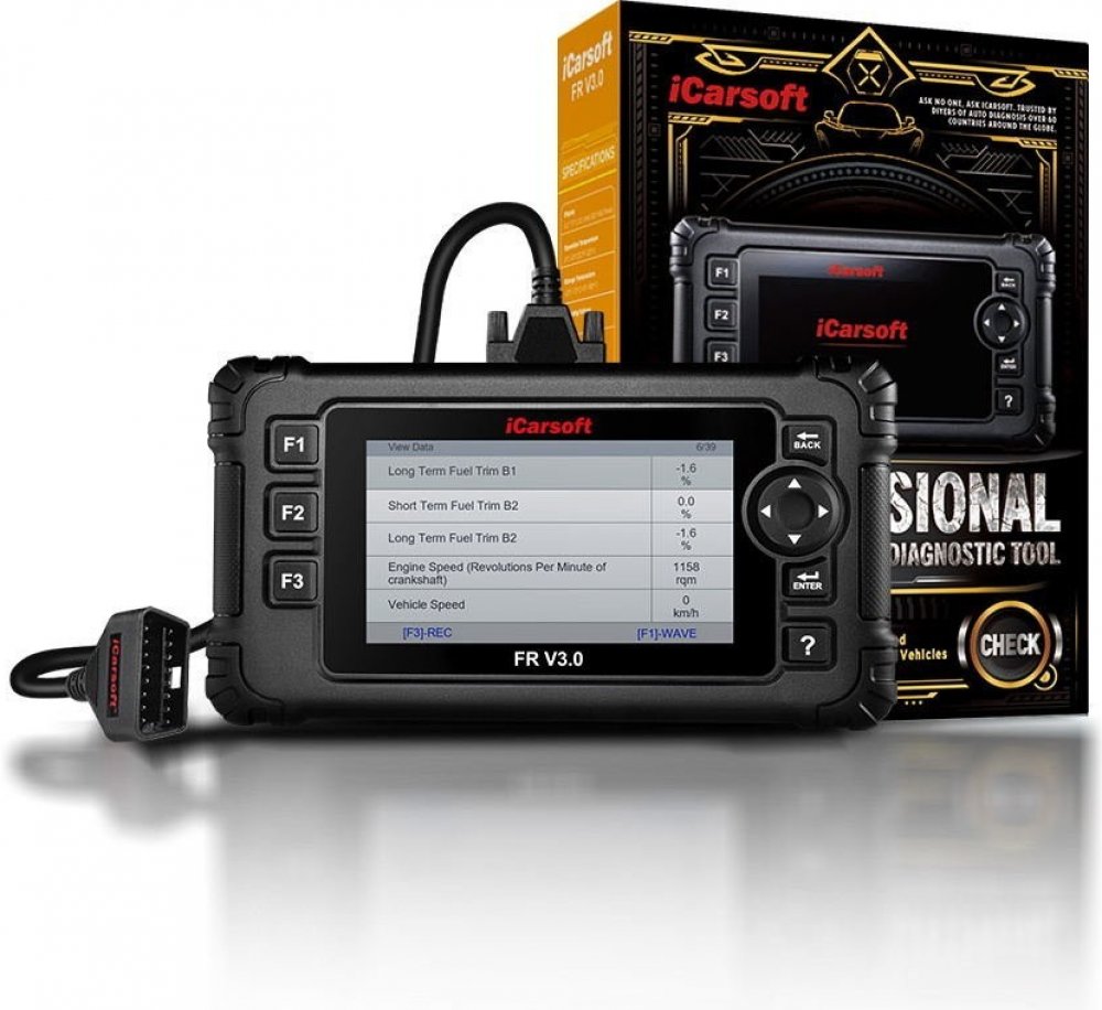 iCarsoft FR V3.0 je diagnostika umožňující připojení ke všem řídicím jednotkám vozidel Alfa Romeo, Citroen, Dacia, Fiat, Peugeot, Renault . Zařízení je vybaveno 4“ barevným displejem a po vybalení je připraveno k použití. Aktualizace softwaru zařízení je zdarma a provádí se prostřednictvím PC(USB kabel je součástí balení). Zařízení má k dispozici širokou škálu jazyků. Podporovány jsou vozy od roku...