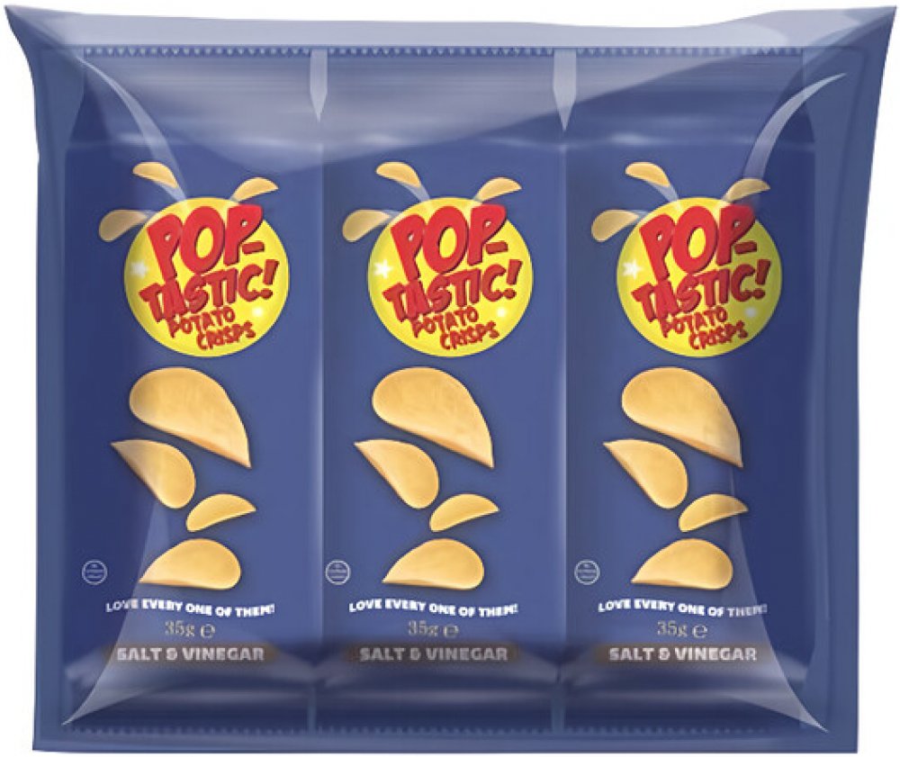 -- Pop Tastic chipsy multipack 3ks, příchuť sůl a ocet.Bramborový snack s příchutí soli a octa.