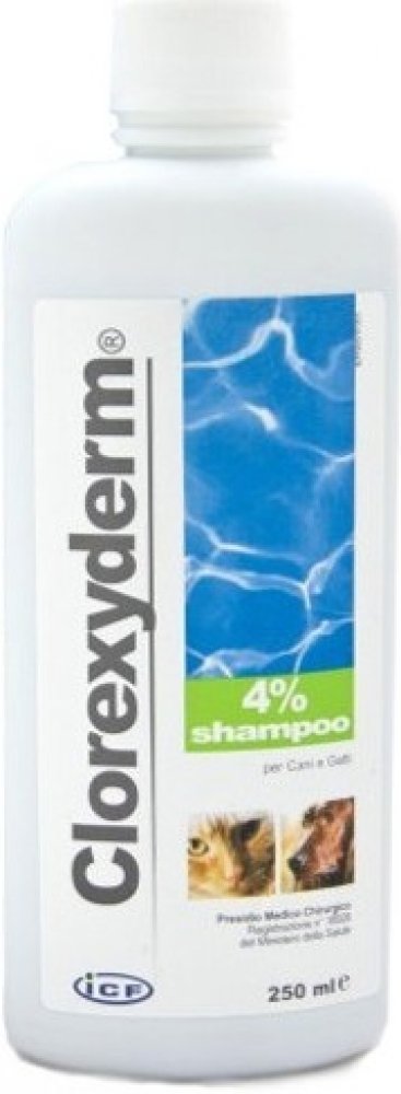 Desinfekční šampon založený na chlorhexidin digluconatu, molekule s širokospektrým antibakteriálním účinkem, který se dlouhodobě používá v humánních a veterinárních přípravcích. Clorexyderm šampon je aktivní proti mikroorganismům citlivým na chlorhexidin.