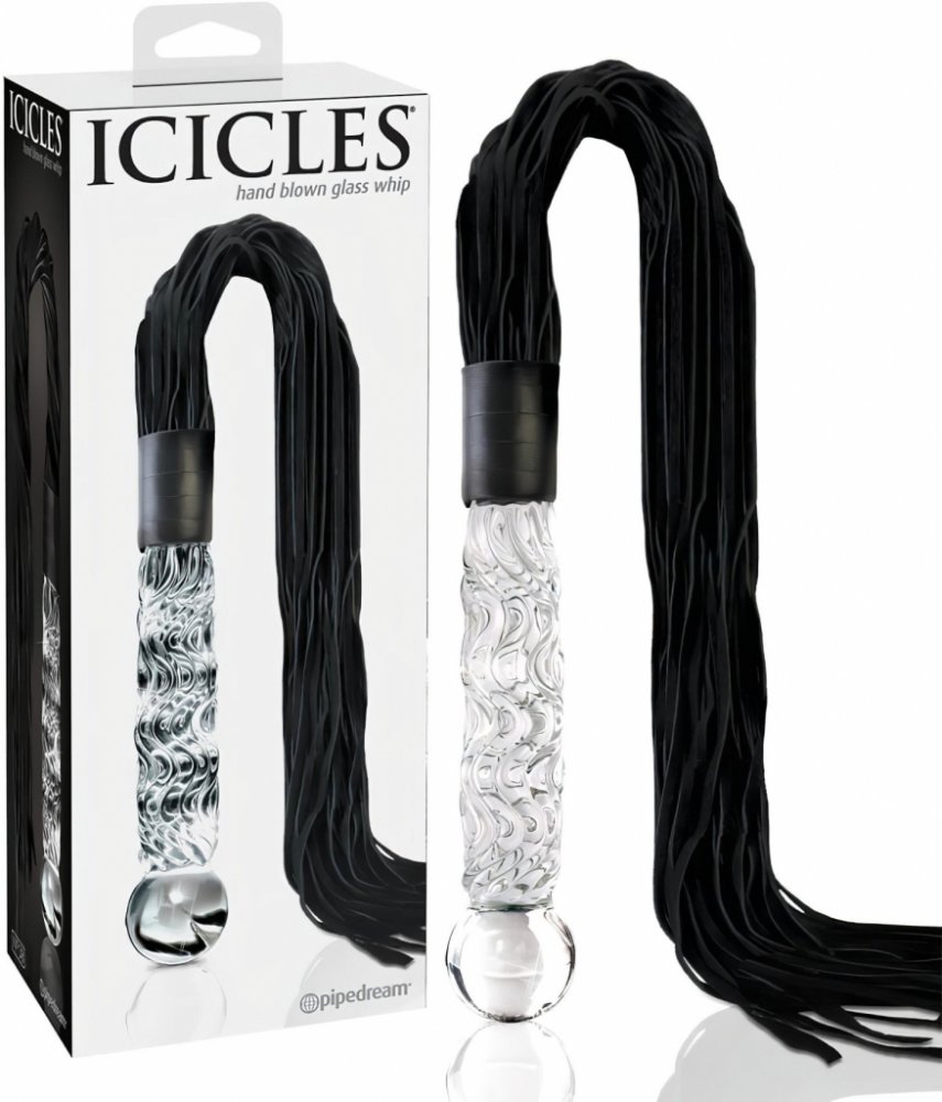 Hygienický skleněný dildo a důtky v jednom vzrušujícím kousku - z pravé kůže a robustního borosilikátového skla!Proč to chceš?Prémiové borosilikátové sklo - odolá horku, chemikáliím a je extra trvanlivéDůtky z pravé kůže - pro smyslné nebo disciplinující hrátkyVlnkovaná a kuličková rukojeť - intenzivní stimulace při vaginálním i análním použitíZakulacené tvary - pohodlné a bezpečné zasunutíLze použít s jakýmkoliv lubrikantem - na vodní, silikonové i hybridní báziPořádně robustní provedení - váha, která je při hře znátBez elektroniky - snadno se čistí100% voděodolné - ideální i do vany nebo sprchyNa co si dát pozor: Před i po použití důkladně umyj jak skleněnou část, tak kožené třásně.EXTRA TIP: Chceš víc vzrušení? Dildo část zchlaď v lednici nebo nahřej pod teplou vodou.V balení najdeš:1x kombinovaný nástroj: skleněné dildo s rukojetí + důtky z pravé kůžeSpecifikace a vlastnosti:Vypadá jako opravdové umělecké díloDůtky a dildo v jednomHypoalergenníŠetrný k pokožceSnadné čištěníSkleněná část je bez zápachuVhodné pro vaginální i anální použitíCelková délka (i s třásněmi): 66,5 cmZasunovatelná délka (rukojeť): 17 cmŠířka kožených třásní: 0,5 cmPrůměr: 2,8-3,8 cmHmotnost: 501 gBarva: průhledná skleněná rukojeť, černé kožené třásněMateriál: borosilikátové sklo, pravá kůžeDoporučené čištění: Skleněnou rukojeť omývej jemným mýdlem a teplou vodou, opláchni a usuš hadříkem, který nepouští vlákna. Koženou část otři navlhčeným hadříkem, případně ošetři speciální péčí na kůži. Doporučujeme použít speciální čisticí prostředek (8718627520062) - lze doobjednat zvlášť.Podívej se na video s představením Icicles No. 38 - skleněné dildo s důtkami (průhledné-černé)!