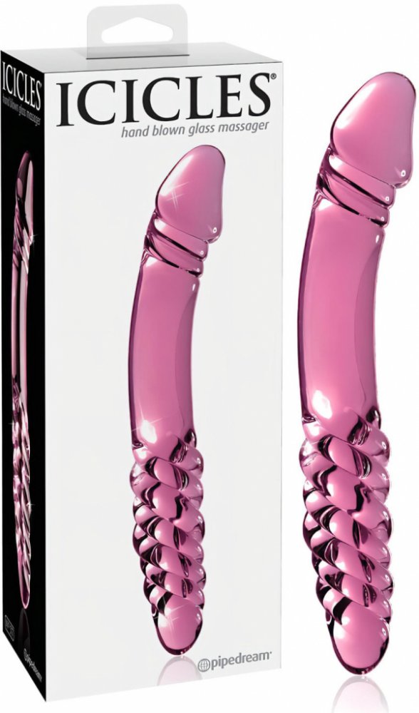 Oboustranný, spirálový a realistický penisový tvar - vzrušující skleněné dildo, které je fakt mistrovským kouskem!Proč je super?Vyrobeno z kvalitního, silného foukaného borosilikátového skla - odolné a efektníOba konce můžeš využít: jeden je spirálový, druhý má realistický penisový tvarZakulacené, hladké linie - pohodlné a bezpečné používáníMaximálně šetrné k pokožce, hypoalergenní a bez zápachu - skvělé i pro citlivějšíLze ochladit nebo zahřát - pro smyslné hrátky s teplotou100% voděodolné - užiješ si ho ve vaně, sprše i v bazénuKompatibilní s jakýmkoliv lubrikantem - na vodní bázi, silikonové i hybridníVyšší hmotnost - intenzivnější prožitek při pronikáníNa co si dát pozor:Před i po použití vždy důkladně umyjTIP NAVÍC: Pro ještě větší zážitek můžeš dildo před použitím vychladit studenou vodou nebo v lednici, případně nahřát pod teplou vodou.Balení obsahuje:1x oboustranné skleněné dildo (spirálový a penisový konec)Specifikace a vlastnosti:Umělecké provedeníHypoalergenníPříjemný, šetrný materiálSnadno se čistíBez zápachuVhodné pro vaginální i anální použitíCelková délka: 22 cmDélka penisové části: 13 cmDélka spirálové části: 9 cmPrůměr: 1,5-4 cm (od nejužší části po nejširší žalud)Průměr uprostřed: 2,7-3,2 cmHmotnost: 425 gBarva: růžováMateriál: borosilikátové skloDoporučení k čištění: Dildo pečlivě omyj jemným mýdlem a vlažnou vodou, opláchni a nech volně oschnout. Ideální je používat speciální čistič (06302500000) - lze objednat zvlášť. Můžeš mýt i v myčce nádobí.Podívej se na video představení Icicles No. 57 - oboustranné skleněné dildo s penisovým tvarem (růžové)!