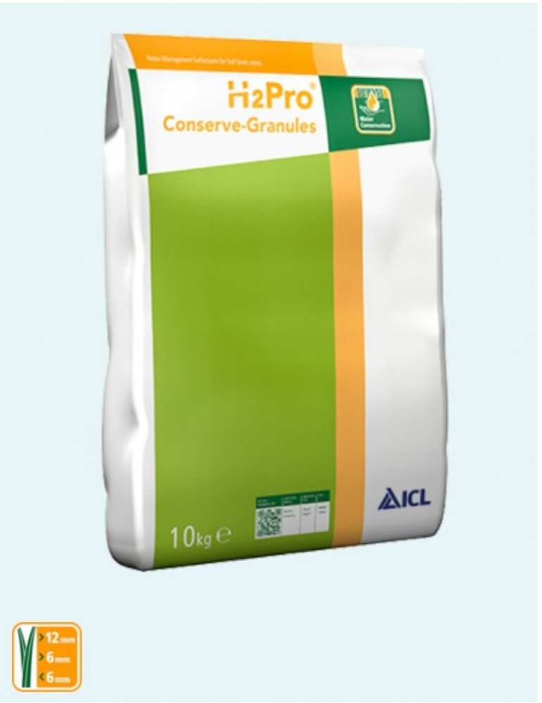 H2Pro Granule výrazně snižují nároky na závlahu díky obsahu povrchově aktivních látek, které pomáhají zadržovat vodu. Mají jedinečné kurativní i preventivní účinky při výskytu suchých míst. H2Pro Granule používá jako nosič Biodac - volně tekoucí, bezprašný celulózový komplex - který rychle rozkládá granule do kořenové zóny.
