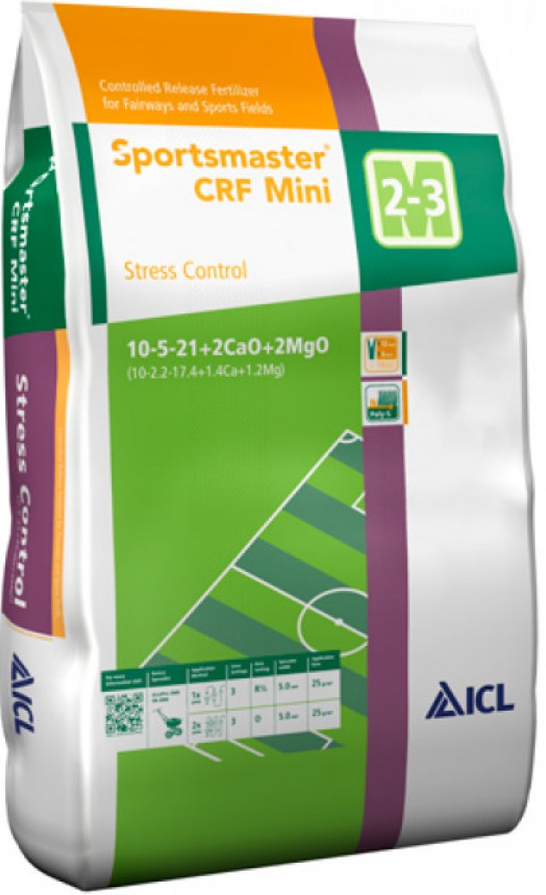 Travní hnojivo pro extrémní teploty ICL Sportsmaster CRF Mini Stress Control 25 kg - PODZIMPrémiové podzimní hnojivo s řízeným uvolňováním dusíku a vysokým obsahem draslíku. Podporuje odolnost trávníku vůči teplotním extrémům a připravuje rostliny na zimu. Kombinuje rychlý nástup účinku s dlouhodobým působením až 3 měsíce. Část živin je dostupná ihned, zbytek se uvolňuje postupně podle teploty a vlhkosti. Výsledkem je zdravý, hustý a barevně výrazný trávník i na jaře.Klíčové vlastnosti Vysoký obsah draslíku pro zimní přípravu Posiluje buněčné stěny a zvyšuje schopnost rostlin regulovat vodu Řízené uvolňování dusíku s technologií Poly-S Živiny se uvolňují jen v podmínkách vhodných pro růst Okamžitý i dlouhodobý účinek Část živin je dostupná ihned, zbytek se uvolňuje 2 – 3 měsíce Odolnost vůči teplotním extrémům Zajišťuje vitalitu trávníku během zimy i silného letního stresu Bez výkyvů v růstu Kombinace obalovaných a neobalovaných granulí zajišťuje stabilní výživuSložení Dusík (N): 10 % Podporuje rychlý růst Oxid fosforečný (P₂O₅): 6 % Zajišťuje silné kořeny Oxid draselný (K₂O): 21 % Zvyšuje odolnost vůči suchu a stresu Oxid vápenatý (CaO): 7 % Posiluje buněčné stěny a zvyšuje odolnost trávníku vůči stresu Oxid hořečnatý (MgO): 2 % Pro podporu fotosyntézySpecifikace Doba působení: 2 – 3 měsíce Doporučené dávkování: 20 – 35 g/m² Balení: 25 kg Aplikační období: červenec – říjen