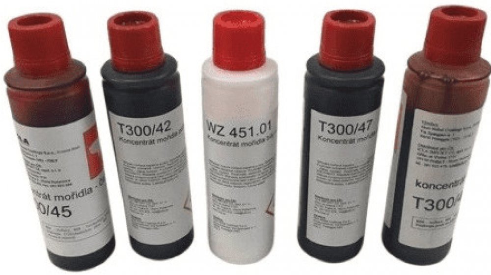 Mořidla jsou dodávána jako koncentrovaný roztok v 0,2 kg balení, mícháním základních barevných odstínů lze dosáhnout širok...