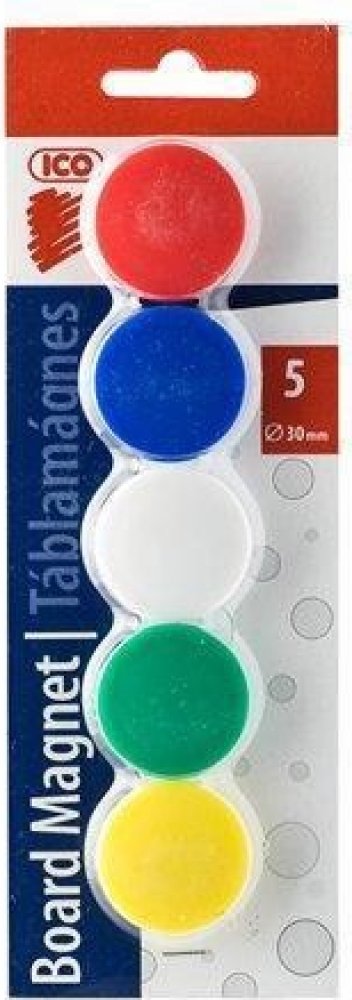 Magnet v mixu barev. Průměr 30mm. 5 kusů na blistru.Upozornění: "Není vhodné pro děti do 3 let. Obsahuje malé části. Nebezpečí udušení."Pozor! Tento výrobek obsahuje magnety nebo magnetické části. Magnety přitahující se k sobě navzájem nebo ke kovovému předmětu uvnitř lidského těla mohou způsobit vážné nebo smrtelné poranění. V případě spolknutí nebo vdechnutí magnetů vyhledejte okamžitou lékařsko...