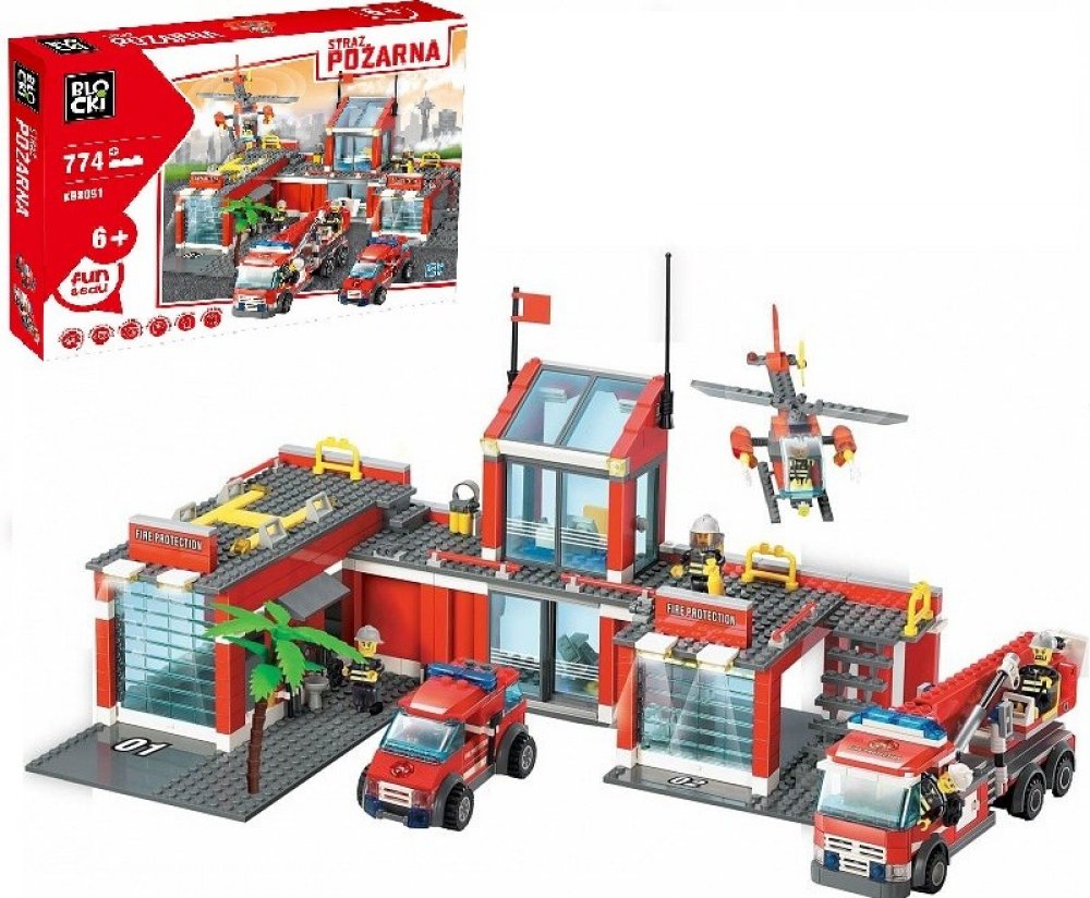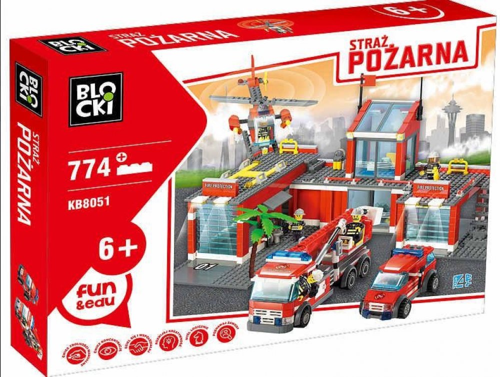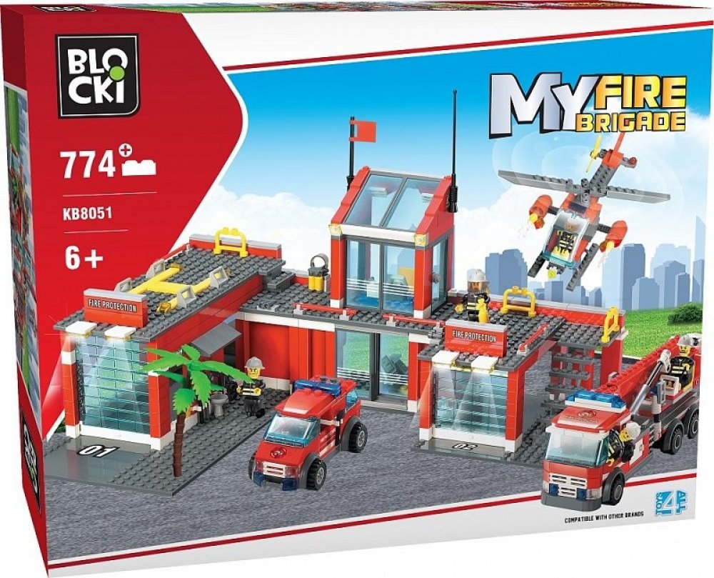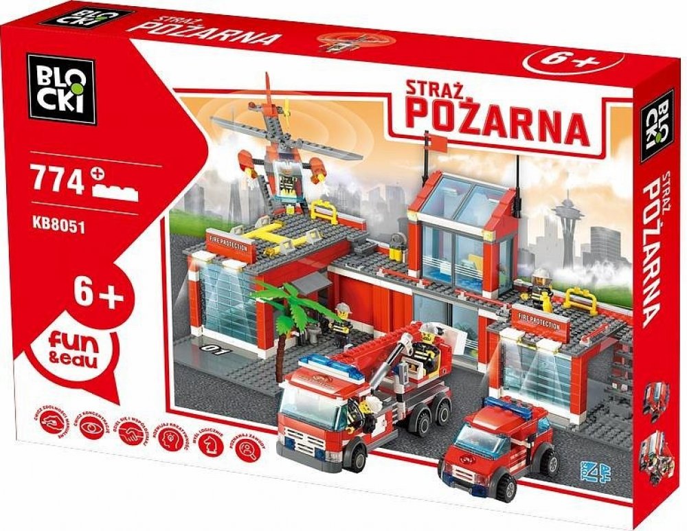 Stavebnice hasičské stanice, vrtulníku a 2 automobilu. Velká hasičská stanice s příslušenstvím. Minifigurky hasičů, pilota, hasičské automobily, vrtulník. Baleno v kvalitním kartonovém obalu s barevným potiskem, návod na sestavení součástí balení. Plně kompatibilní s dalšími stavebnicemi (LEGO, Sluban, KAZI apod.). Rozměry krabice (kartonového obalu) 50x38x6 cm. Certifikace CE, EN71-3. 774 dílků Stavebnice BLOCKI pomáhají dětem rozvíjet kreativitu a představivost, učí je řešit problémy, trénují manuální schopnosti a jemnou motoriku. Lehce se skládají, jsou dodávány v estetických obalech, mají evropský atest i certifikaci. Jsou plně kompatibilní se všemi ostatními známými značkami stavebnic jako je LEGO, Sluban a další. Pro nejmenší děti nabízíme řadu MUBI, kompatibilní s např. LEGO Duplo, pro dívky je zde řada LALILANDIA.
