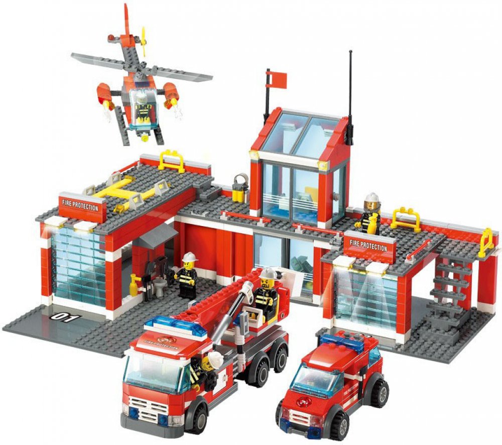 Stavebnice hasičské stanice, vrtulníku a 2 automobilu. Velká hasičská stanice s příslušenstvím. Minifigurky hasičů, pilota, hasičské automobily, vrtulník. Baleno v kvalitním kartonovém obalu s barevným potiskem, návod na sestavení součástí balení. Plně kompatibilní s dalšími stavebnicemi (LEGO, Sluban, KAZI apod.). Rozměry krabice (kartonového obalu) 50x38x6 cm. Certifikace CE, EN71-3. 774 dílků S...