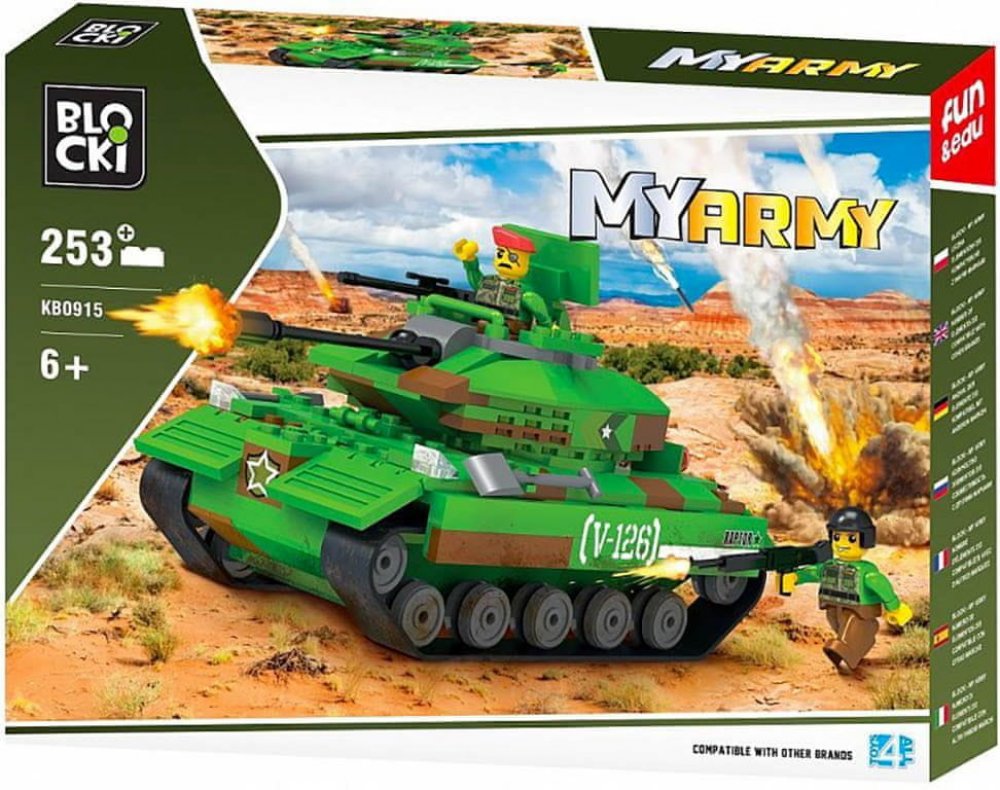 Stavebnice Blocki My Army tank na poušti udělá z Vašeho dítěte pravého tankistu. Kompletně vybavený pásy, dělem, kulometem a otočnou věží. Součástí stavebnice jsou 2 figurky vojáků. Stavebnice zaručí dětem mnoho hodin zábavy, pomůže jim rozvíjet kreativitu, manuální dovednosti a zlepšuje logické myšlení. Stavebnice je kompatibilní se stavebnicemi ostatních světových značek jako je Lego, Sluban a další. Všechny dílky stavebnice se velmi snadno propojují a jsou vyrobeny z kvalitního plastu.