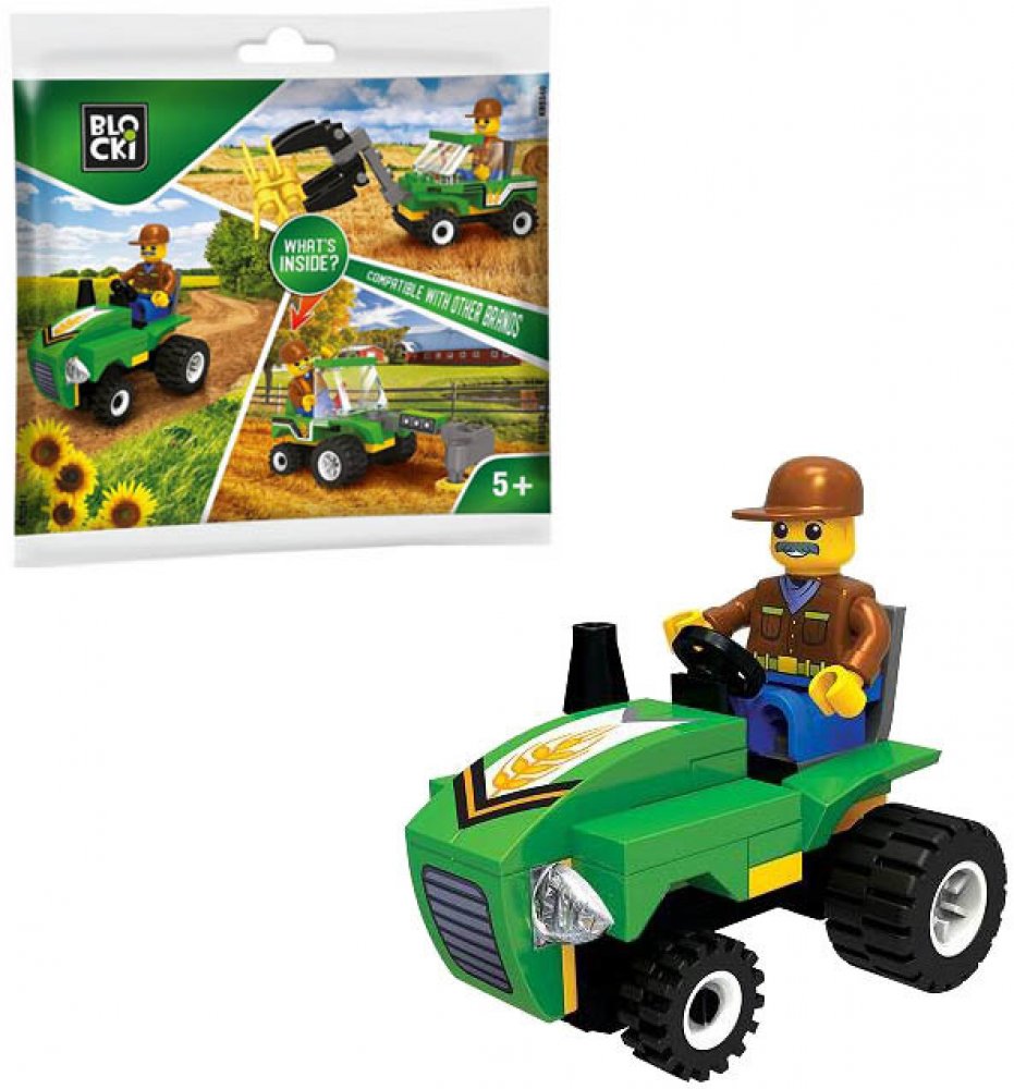 Mini stavebnice zemědělského stroje a figurka farmáře (LEGO kompatibilní). Plně kompatibilní s dalšími stavebnicemi (LEGO, Sluban apod.). Baleno v sáčku (rozměry cca. 14x19cm). Certifikace CE, EN71-3. 47 dílků. Sestavte si velkou farmu se všemi sadami Blocki MyFarm! Stavebnice BLOCKI pomáhají dětem rozvíjet kreativitu a představivost, učí je řešit problémy, trénují manuální schopnosti a jemnou motoriku. Lehce se skládají, jsou dodávány v estetických obalech, mají evropský atest i certifikaci. Jsou plně kompatibilní se všemi ostatními známými značkami stavebnic jako je LEGO, Sluban a další.