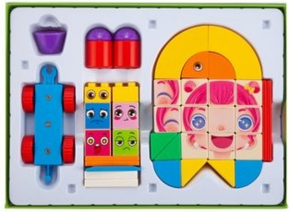 • barevné obrázky vytištěné ve formě puzzle s tvářemi představujícími různé emoce procvičují vizuální a prostorovou inteligenci a mohou být výchozím bodem pro rozhovor o emocích,