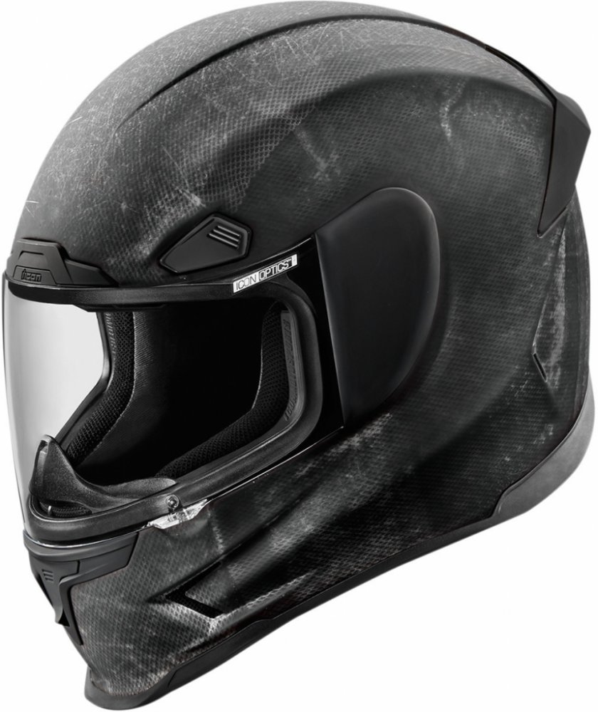 AIRFRAME PRO Helma na moderní hypersport motorky - vyšší zadní část, nižší clips-ons, pro moderní jízdní pozici. Kompaktní tvar, poloha hlavy vyžaduje vyšší úhel pro udržení viditelnosti a stability. S ohledem na tuto skutečnost vyvinul ICON řadu AIRFRAME PRO. ručně vyrobená skořepina čtyři různé velikosti petidílná vložka s HydraDry pro odvod vlhkosti lineární otvory pro odvětrávání čela odmlžovací systém Prolock zavírání odnímatelný deflektor brady certifikace (Evropa) ECE 22-05