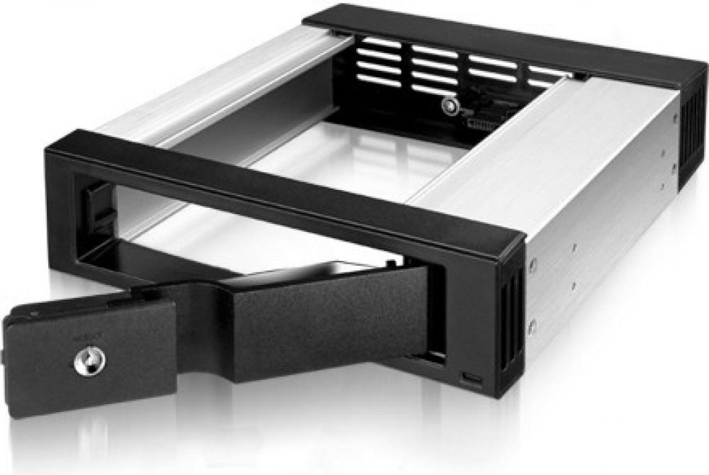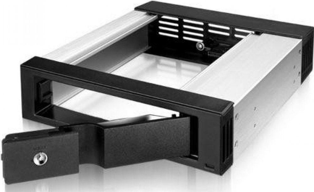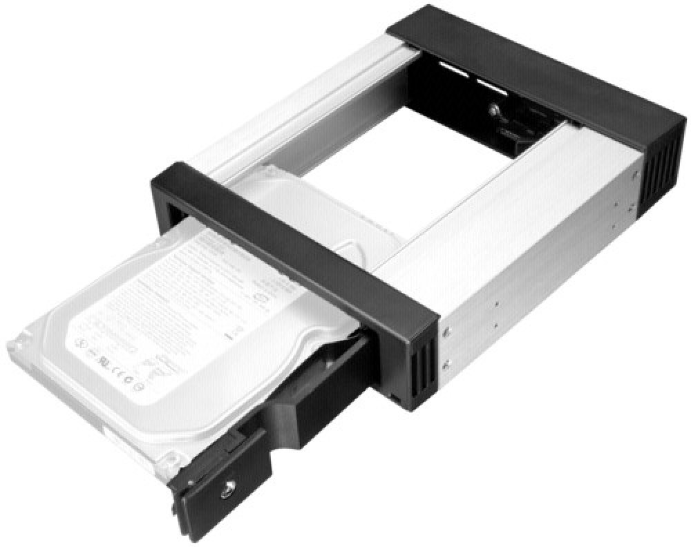 Jednoduchý a praktický hliníkový rámeček s předním panelem z černého plastu se umisťuje do volné 5.25" pozice. Do tohoto rámečku lze pak hot swap měnit jakýkoliv 3.5" SATA I/II/III pevný disk s neomezenou kapacitou. Rámeček je uzamytalený a nehrozí tak náhodné vysunutí disku.