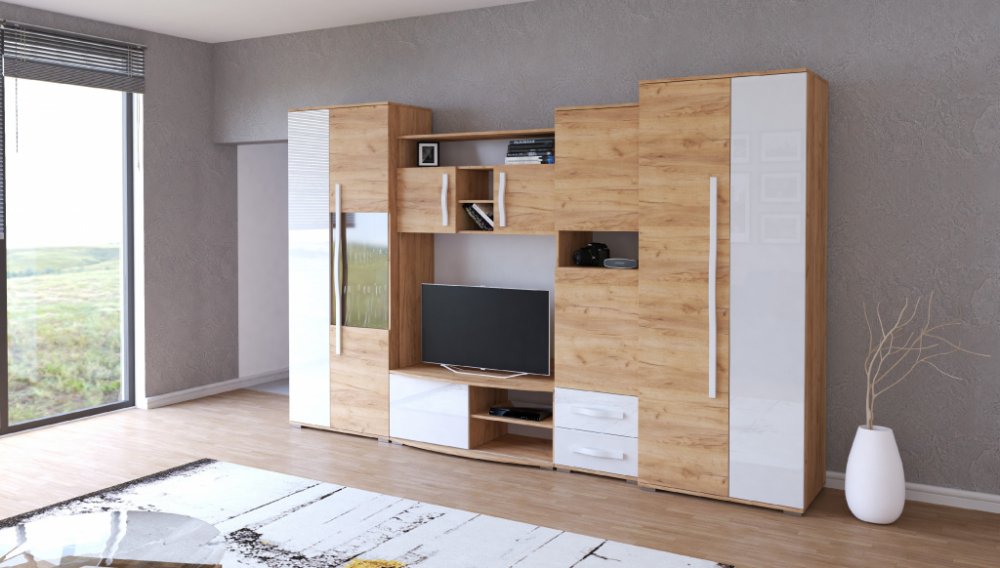 Opravdovou zkouškou interiéru se vždy stává obývací stěna. Už máte vybranou televizi a teď sháníte nábytek okolo. Stěna Laura poskytuje dokonalé zázemí pro funkční styl a také pro úložné prostory. Je důležité sledovat oba tyto aspekty. Tu pravou eleganci naleznete v tomto skvostném kusu nábytku. Na jeho provedení byly použity ty nejlepší materiály, jaké nám byly k dispozici. Spolupracovali jsme na nich se zahraničními specialisty. Pořiďte si i ostatní doplňky a nábytek z této prvotřídní sady a udělejte tak svůj domov originální. Všimněte si také provedení, na kterém jsme si dali opravdu záležet. Na všechny jednotlivé díly máte od nás záruku 24 měsíců. V této sadě naleznete vysokou skříň, velkou polici, stolek pod TV, prosklenou vitrínu a skříňku s otevřenými prostory. Nezapomeňte, že u nás neplatíte nic za dopravu! Nakoupit můžete bez problému i na splátky. Garantujeme Vám naprostou spokojenost! Proměňte svůj domov v ještě krásnější!