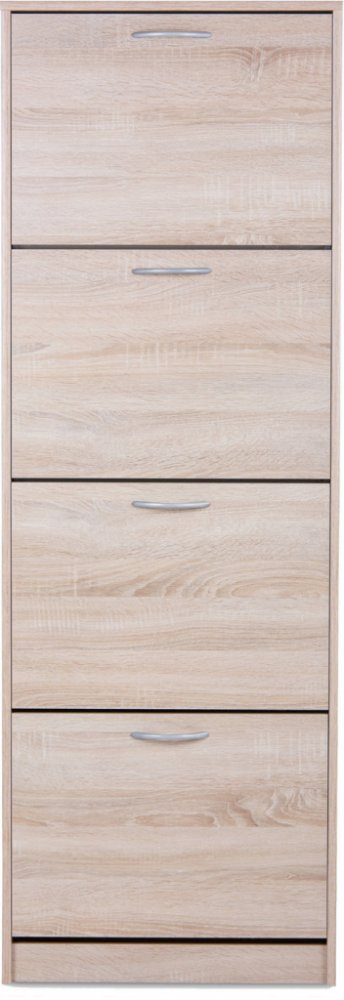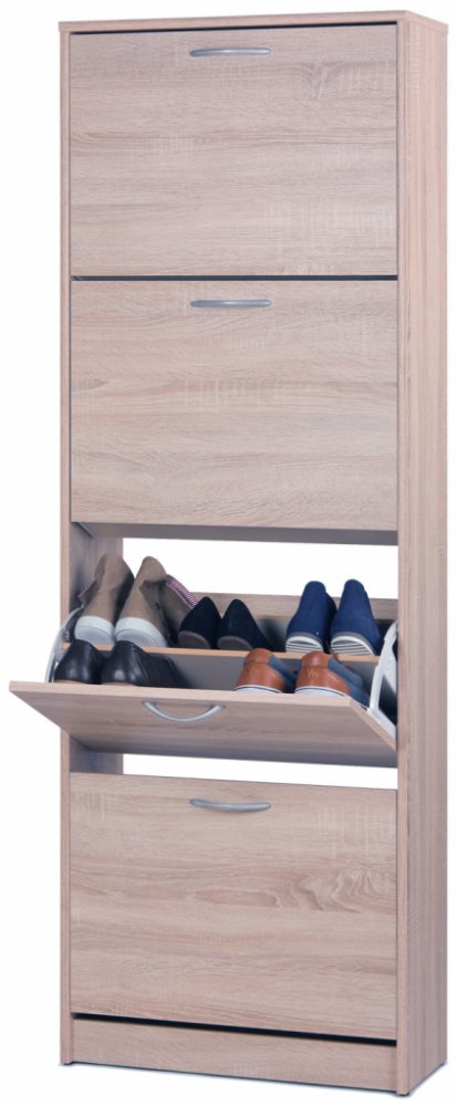 V každém domě i bytě přijde vhod odkládací prostor pro boty. Zajisté vám udělá radost botník IDEA nábytek, který vyřeší poházené boty kolem jednou pro vždy. Vyklápěcí botník pojme pohodlně všechny vaše boty, takže nebudou kazit styl místnosti. Dominuje mu hnědá barva. Materiálem tohoto botníku je lamino. Rozměry botníku činí 162 × 58 × 25 cm. Hlavní vlastnosti produktu IDEA nábytek Botník LINZ 4 výklopy dub Jedná se o vyklápěcí botník IDEA nábytek Dekor dřeva: dub Botník doplňuje hnědá barva Materiálem pro zhotovení botníku IDEA nábytek je lamino Rozměry botníku jsou 162 × 58 × 25 cm
