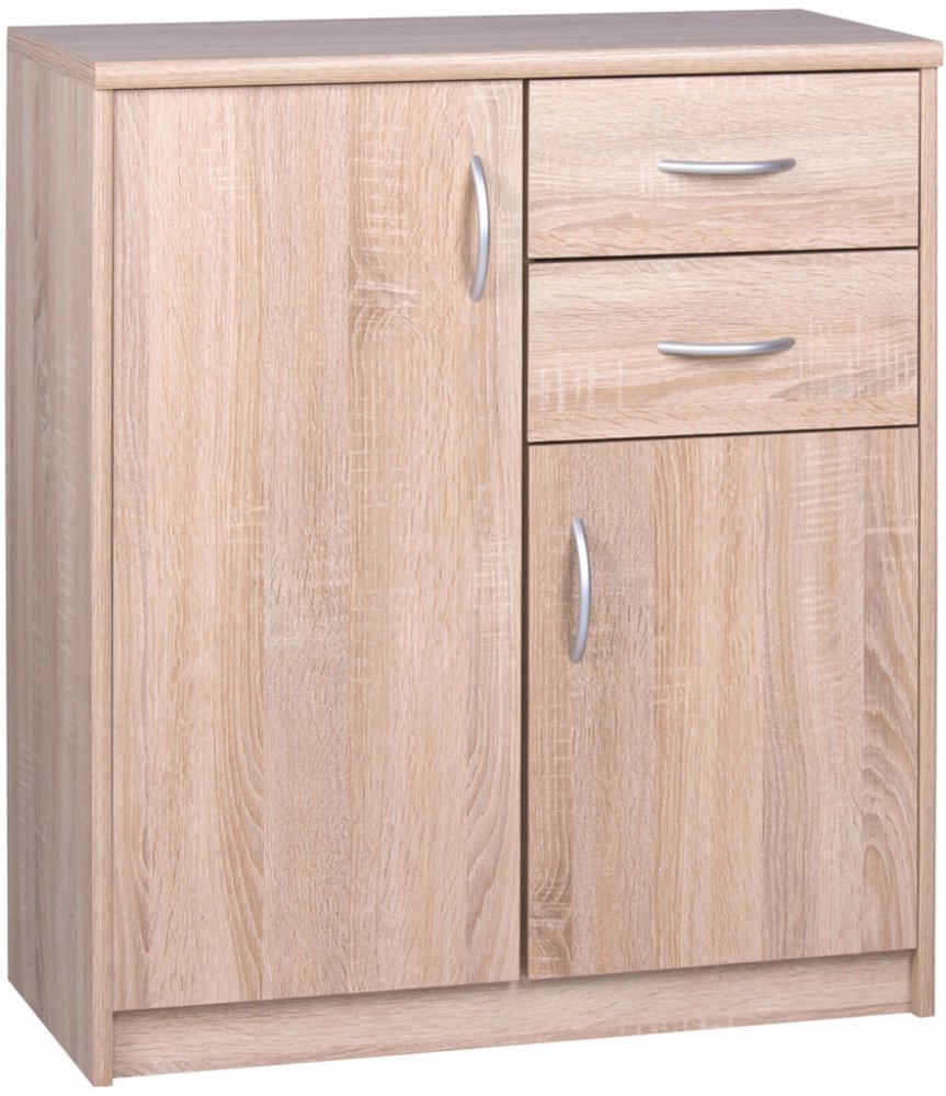 Provedení: Jednoduchá komoda Nice 3 je vyrobena z laminované dřevotřísky v provedení dub sonoma.Uvnitř komody se nacházejí dvě variabilní police za většími dvířky a jedna variabilní police v prostoru pod zásuvkami. Zásuvky mají kovové pojezdy. Zboží je dodáváno v demontu.