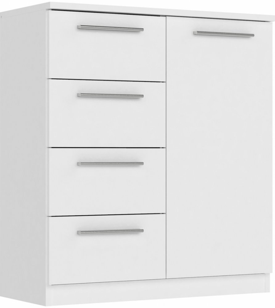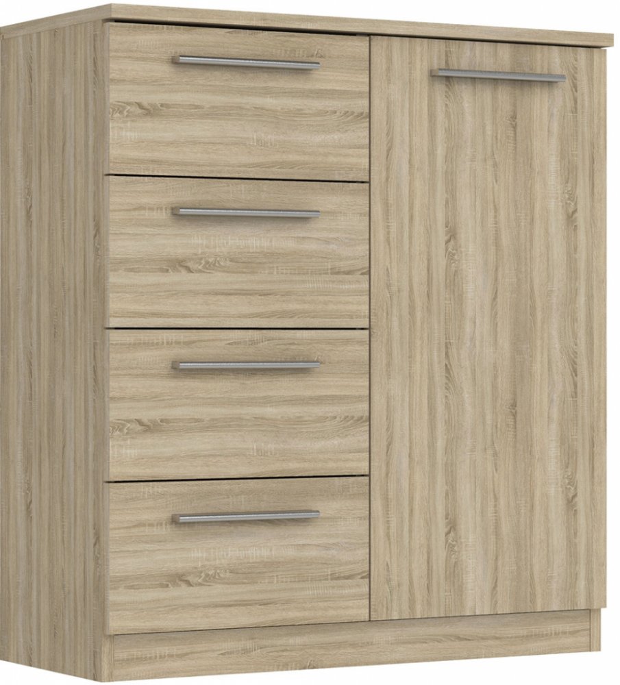 Komoda SURREY má 4 zásuvky s kovovými pojezdy a jedny dveře.