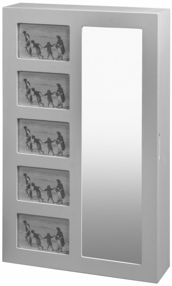 Provedení:Moderní závěsné zrcadlo je vhodné na zařízení předsíní, obývacích pokojů a ložnic.Rám tohoto zrcadla je vyroben z MDF v barevném provedení bílá. Za zrcadlem se skrývá praktická šperkovnice, která rozzáří každou moderní ložnici nebo předsíň. Vedle zrcadla se nachází pět rámečků na fotografie.Zboží je dodáváno již smontované..