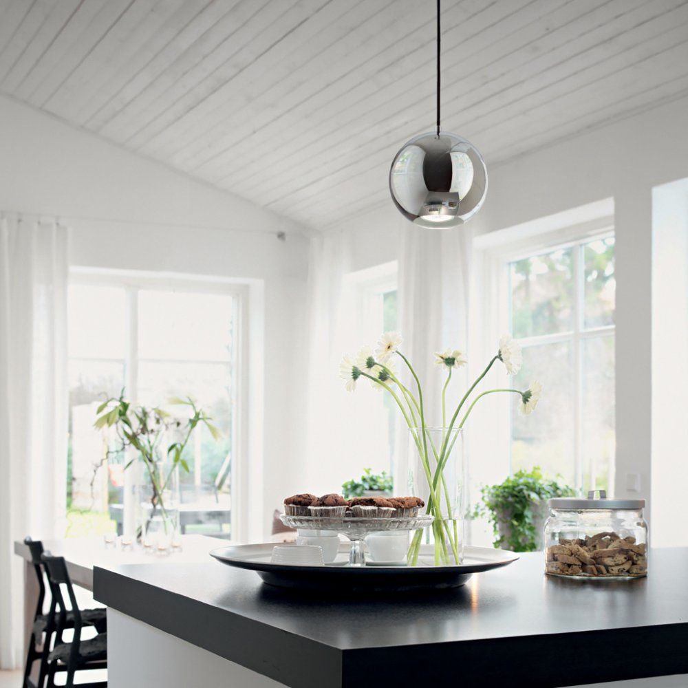- Závěsné svítidlo s chromovaný rámem a difuzerem.