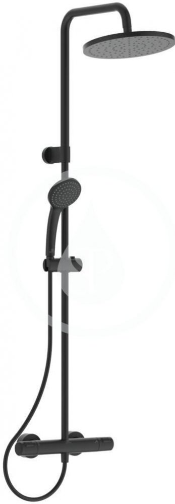 Ideal Standard - Ceratherm T25 Silk Black Sprchový systém s termostatickou baterií a se sprchovým příslušenstvím A7545XG Sprchová souprava s termostatickou baterií v hedvábně černé barvě Tato sprchová souprava je navržená v hedvábně černé barvě. Do prostoru koupelny vnáší tajemnou atmosféru a působivý styl. Souprava se skládá z kvalitní termostatické sprchové baterie, která je vybavená bezpečnostn...