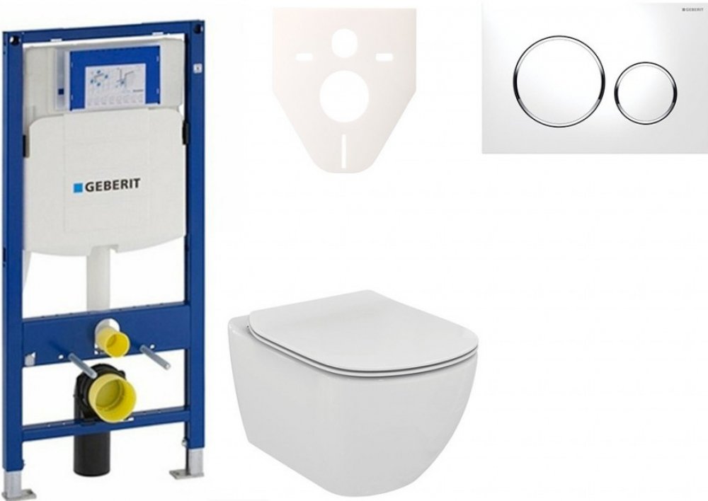 Set předstěnové instalace, klozetu a sedátka Ideal Standard Tesi, tlačítka Sigma20, bílá/chrom