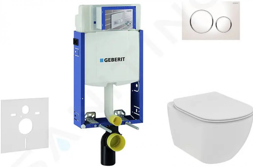 Set předstěnové instalace, klozetu a sedátka Ideal Standard Tesi, tlačítka Sigma20, bílá/chrom